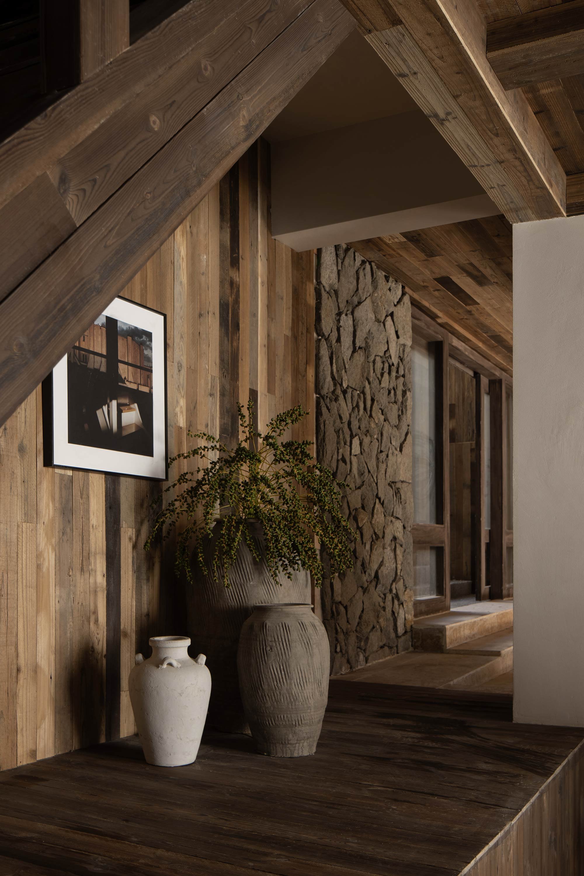 The building is a renovation and expansion of a former Tibetan residential building, retaining the stone and wood materials used in the original construction for redecoration. The streamlined layout of the reception hall is based on the previous rest stops on the Tea Horse Road. The front hall has an open public entrance to reference the tying of horses at entrances in the past. Inside is an open courtyard to ease the flow of people, and next to it is a check-in and coffee shop.