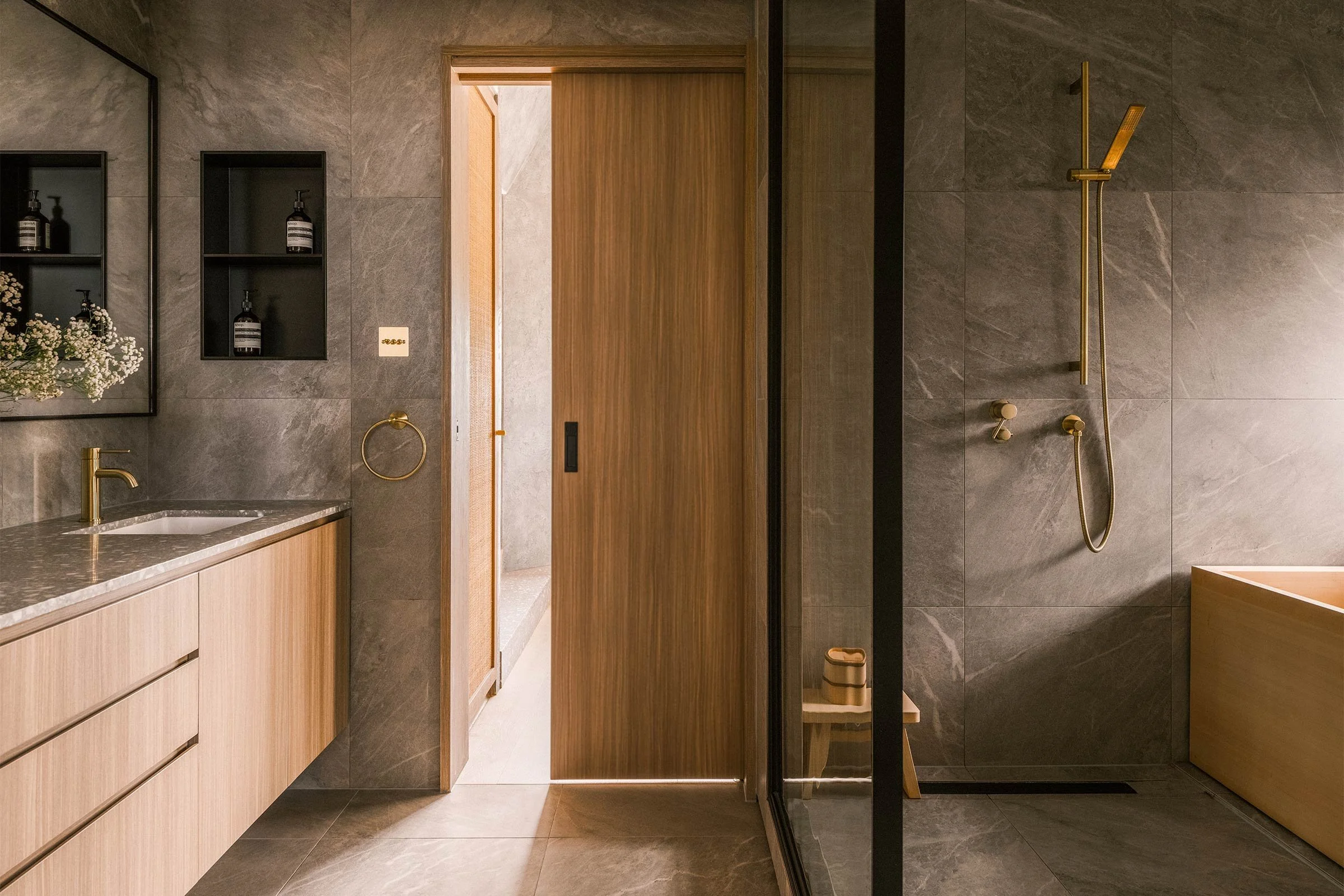 EL: The residence is located on The Peak in Hong Kong. The location is unique due to its elevated position, offering breathtaking panoramic views of the cityscape and the ocean. The large framing portal in the living room frames the view of the ocean, and there are specific moments that highlight the scenery outside. The area is known for its tranquillity and natural surroundings, so the building provides an ideal setting for the project to embrace the surrounding beauty and create a serene connection with nature.