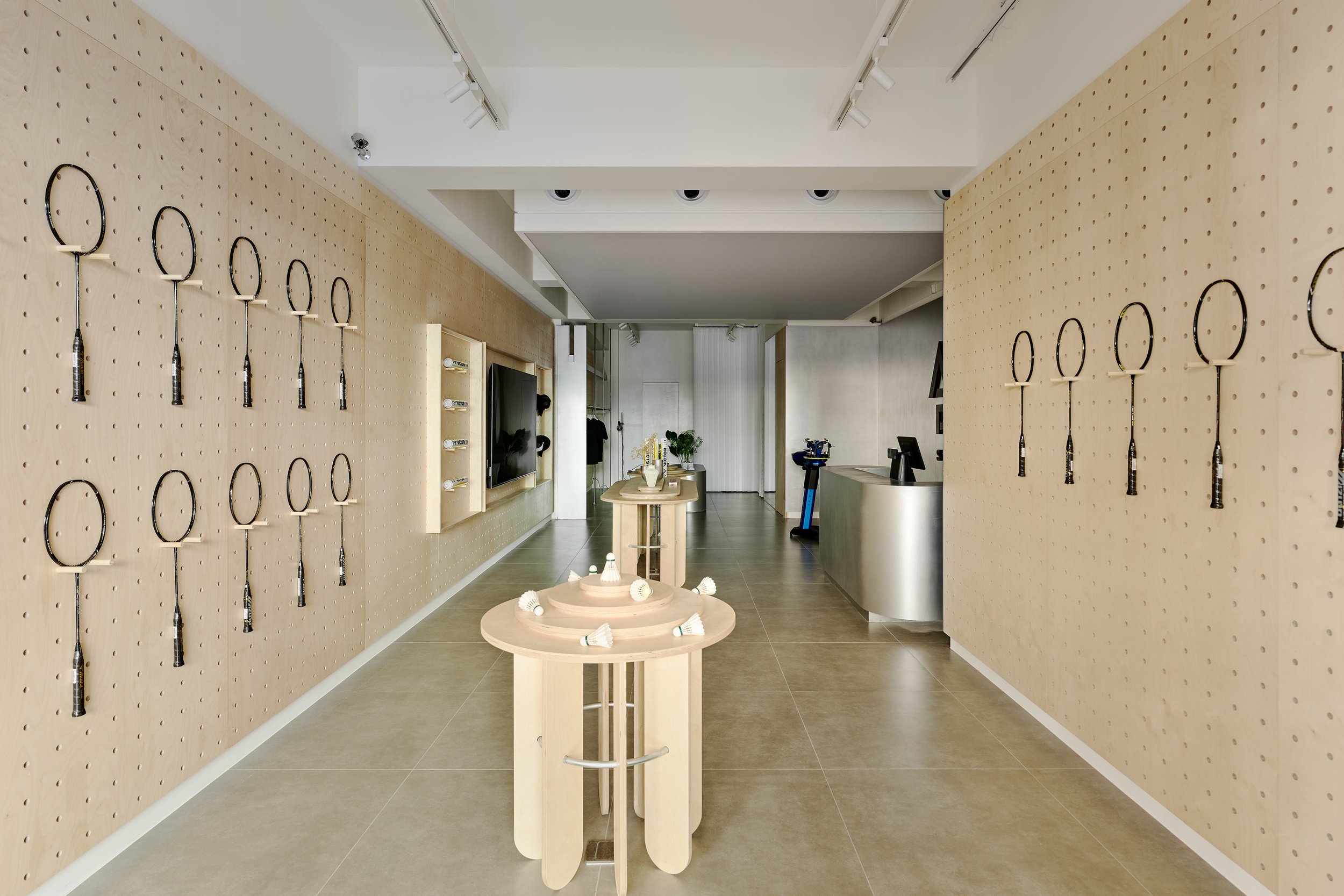 The retail store by Zhu Shi Design Studio draws on the heritage of badminton and its technological evolution in a sharp space that elevates the shopping experience