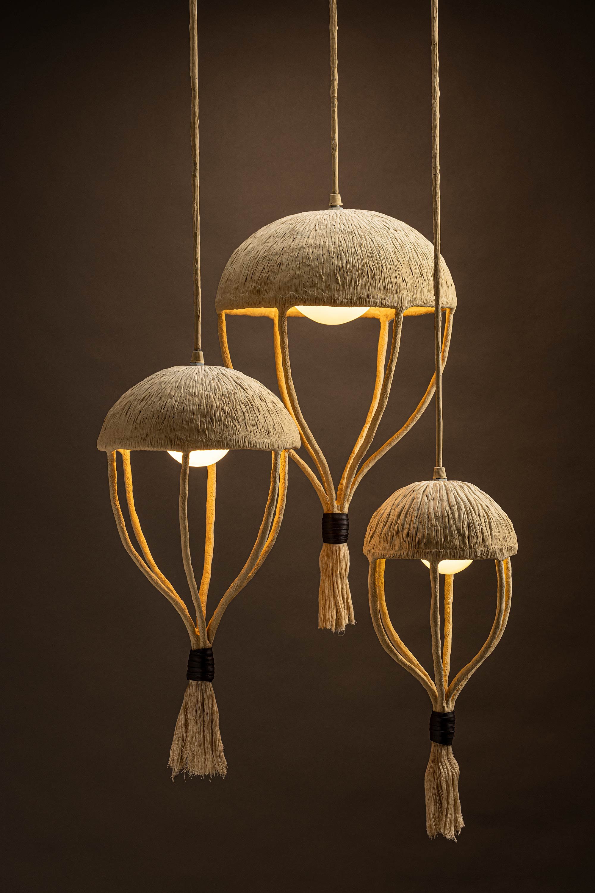 Husband-and-wife team Shailesh Singh and Mansi Mehta founded Shailesh Rajput Studio in Mumbai in 2015. Through COVID they started to experiment with easily sourced materials, specifically a non-toxic epoxy resin and wire mesh. From these they created a series of nature-inspired, organically shaped lights. The Bodhi Deep series, for example, is inspired by Bodhi seed pods and the Hindi word deep, meaning ‘light’. The studio has since branched out into producing larger pieces in sand-casted aluminium.