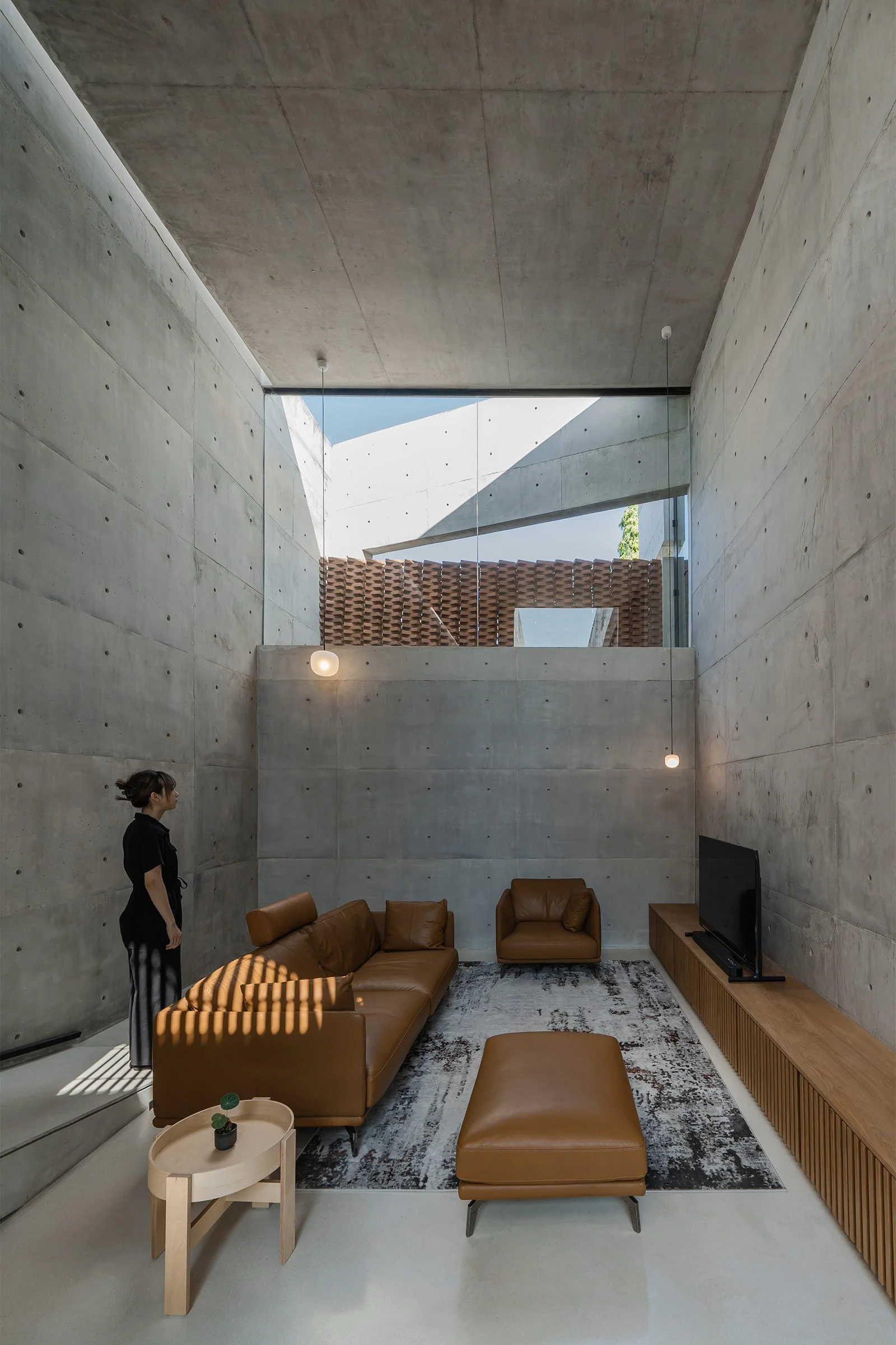 Geometric Volumes and Exposed Concrete Define this Semarang Home