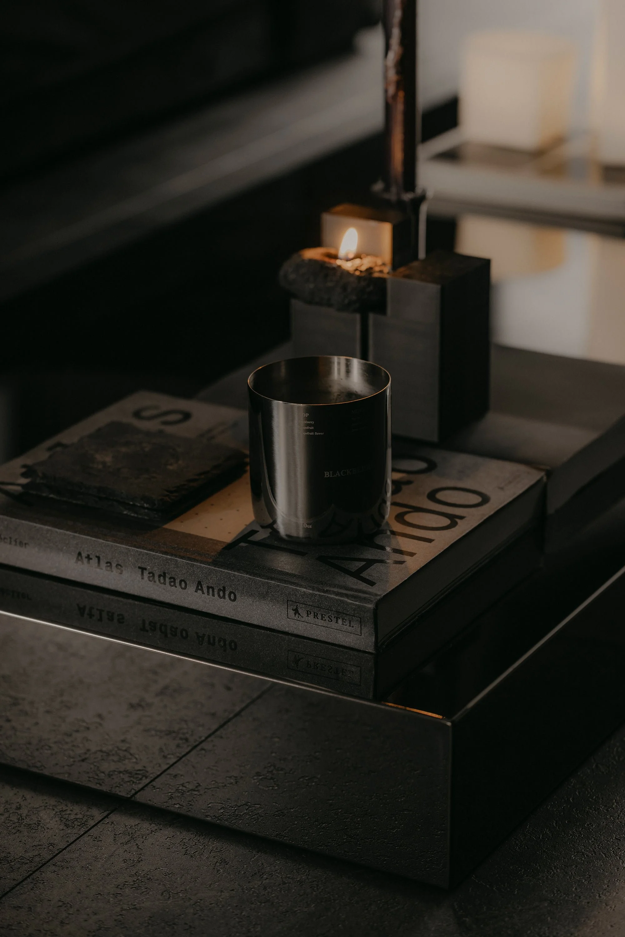 But what is most striking is the colour palette. Shades of deep black and moody grey saturate the environment, absorbing light and creating a shadowed, intriguing space. While there’s a certain heaviness from the materials, there’s also a distinct elegance in the sharp lines and geometric shapes that create a sense of order and precision.