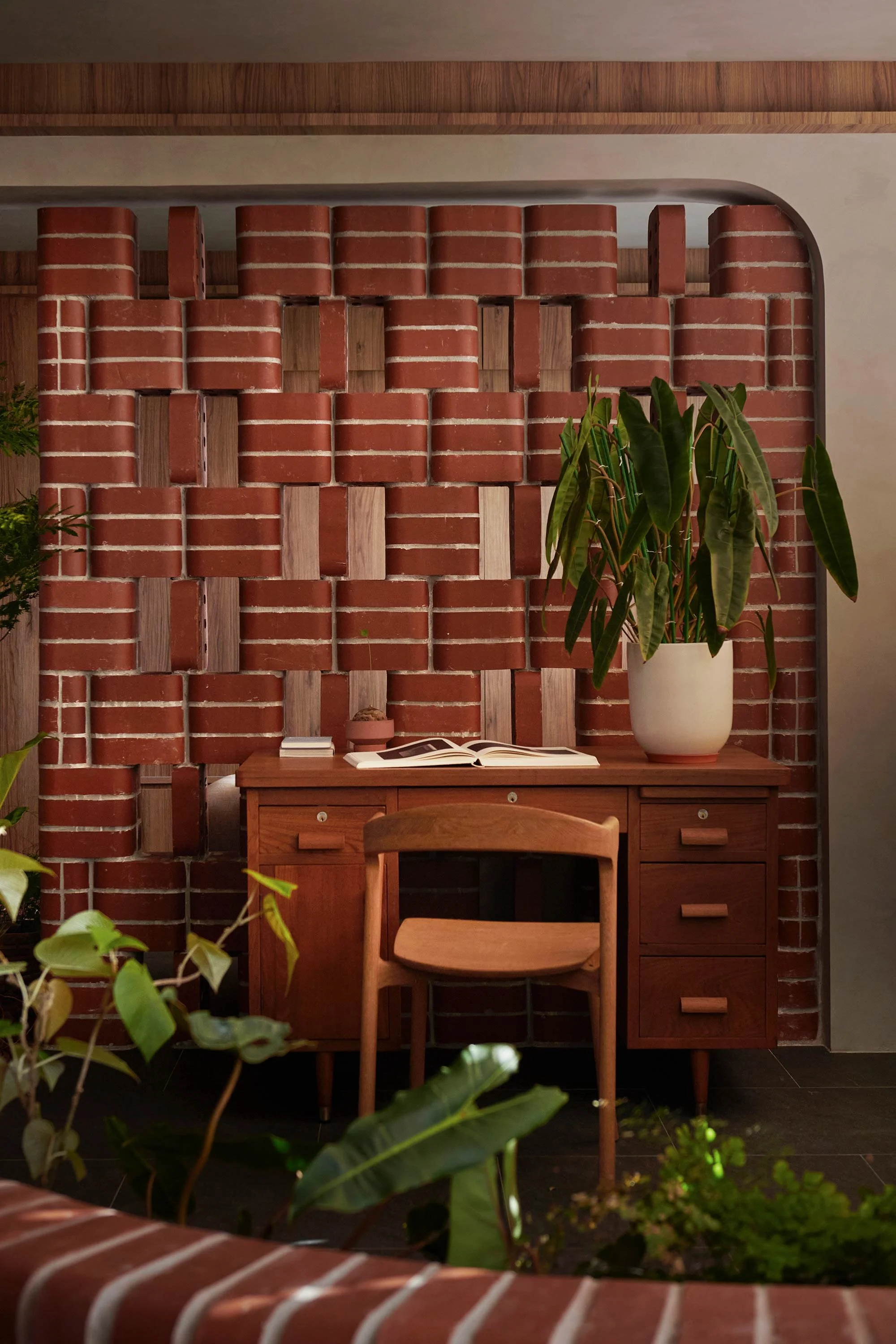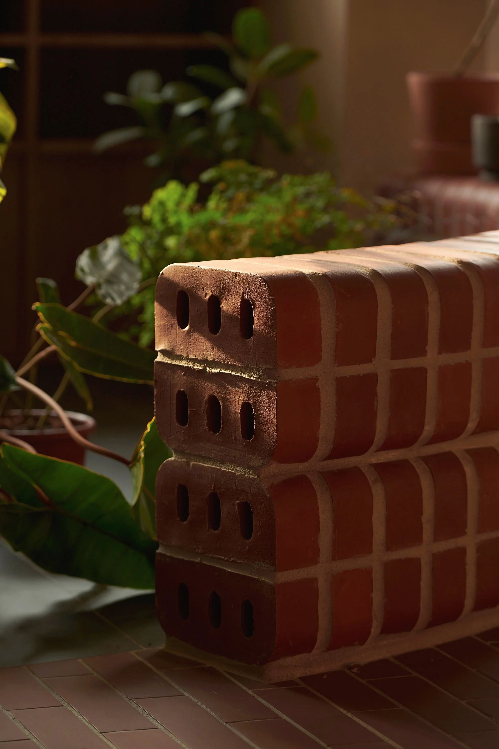 Lim decided to look at outdoor park settings as the starting point. ‘First, we needed to find the right material, and we wanted to look for one that was commonly used in parks,’ she explains. In particular, she drew on her memories of the outdoor benches, walkway edges and planters made of double bullnose bricks in Singapore’s older parks.
