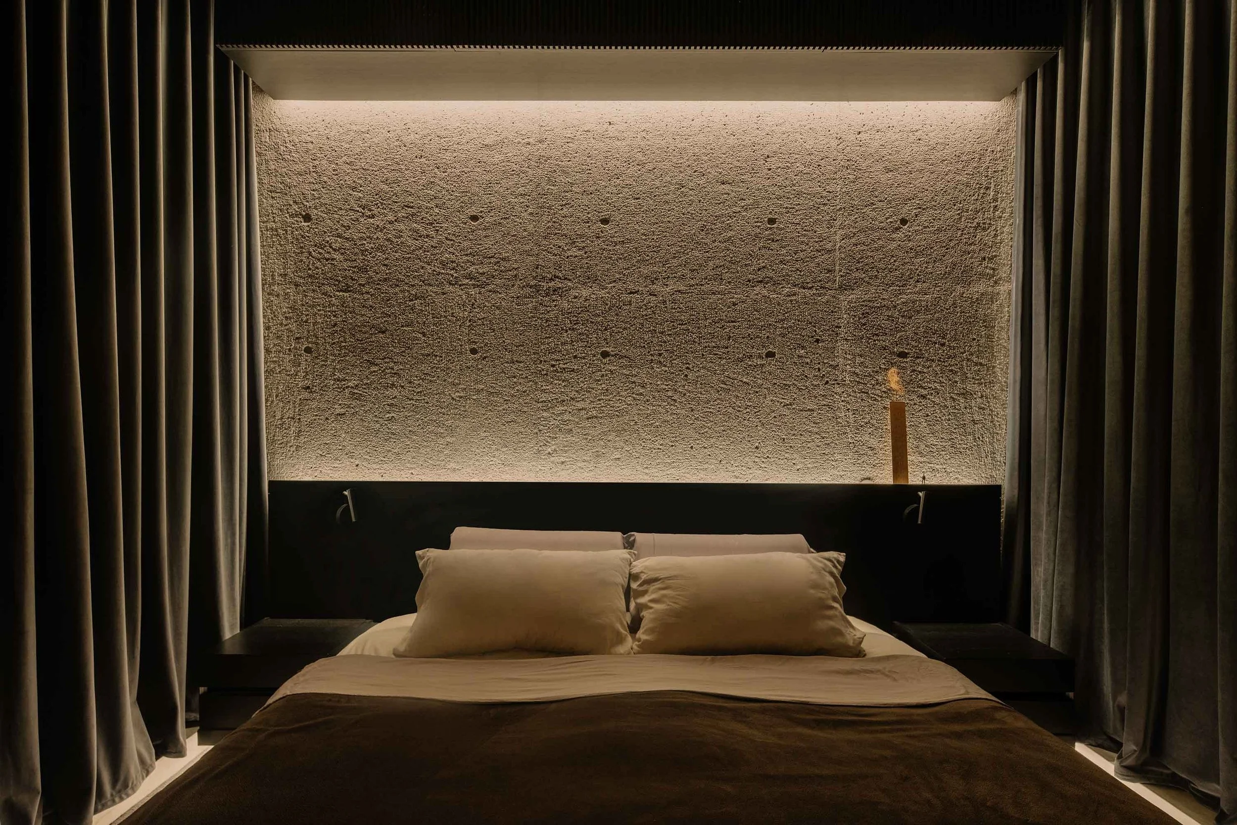 The final act is a secret space reserved only for the couple. On the third floor, a spiral staircase leads to the uppermost level containing the study, main bedroom and en-suite. There are no windows, but two courtyards and a skylight present their own show of daily beginnings and ends, of day and night, rain and shine, of sky and clouds, and even moonlight. Nature, this culmination point seems to say, is the truest reminder of the ticking clock of life.
