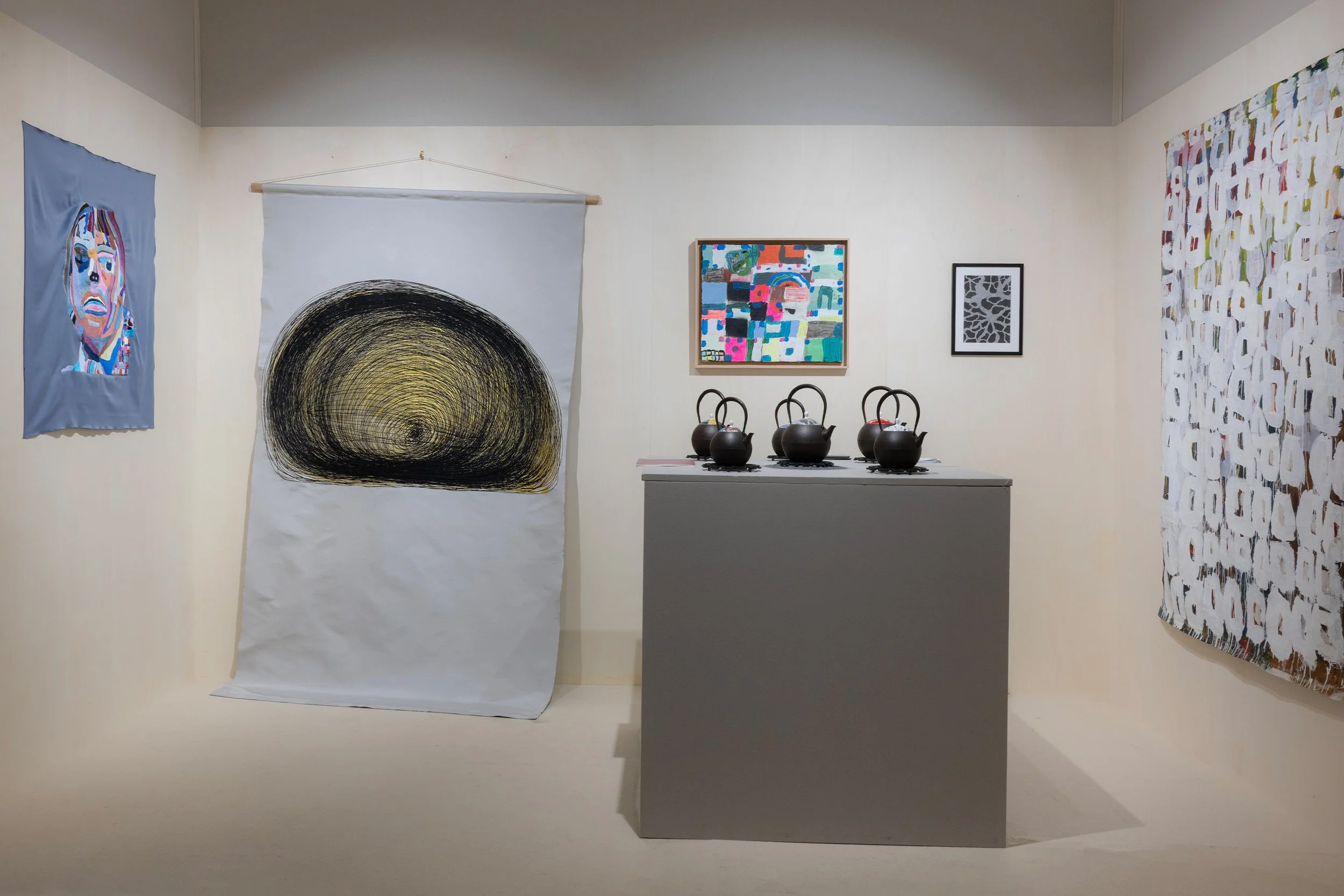 Further into the fair, Japanese brand Heralbony explored scale through reproduction. The Cannes Lion- and LVMH Innovation Award-winning company works with artists with intellectual disabilities, scaling original artworks into everyday objects through collaboration and licensing. Showcasing artists from Europe and Japan, the brand featured collaborations with master artisans specialising in Nambu ironware, Nishijin textiles and satin embroidery. ‘Art itself is precious, but it’s only one piece,’ said co-CEO Takaya Matsuda. ‘If we can scale the art into everyday life through different techniques, more people can experience it.’