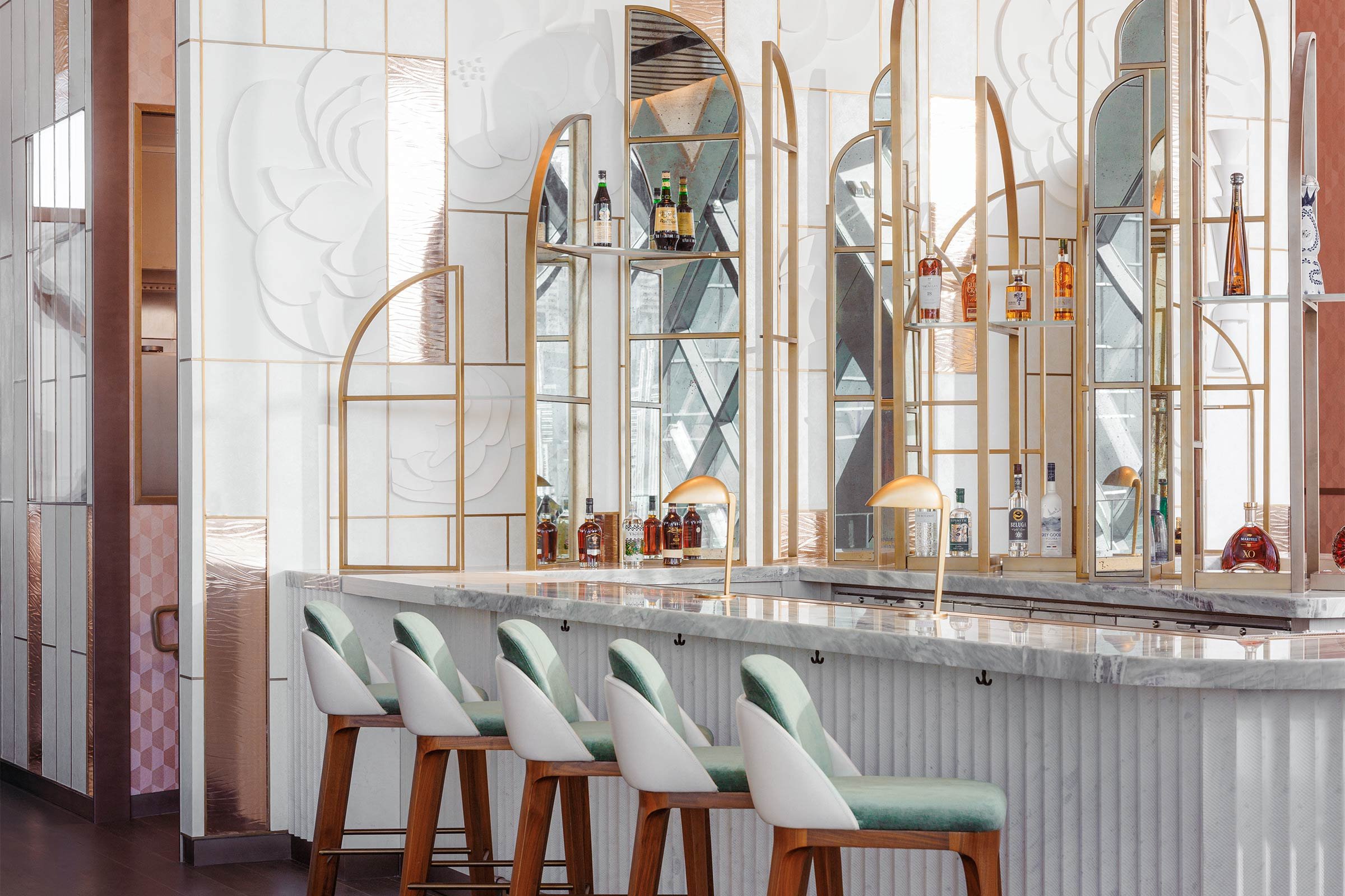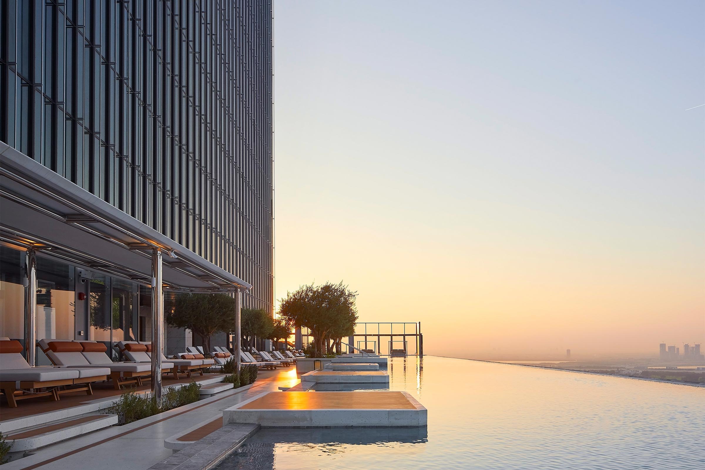 As for the cantilevered structure, it will be experienced by most visitors as The Link, which from the inside provides a surprising amount of space over multiple levels. This is the home of the F&B offering, and it is a highlight, with high-quality cuisine available throughout. The largest of the spaces is all-day destination Aelia, a breezy restaurant with high ceilings and city views; adjacent is Sphere, which caters to the cocktail set. Downstairs you’ll find Arrazuna, a bazaar-like collection designed by HBA at which each outlet offers a contemporary take on pan-Middle Eastern cuisine. Renowned chefs Anne-Sophie Pic, Paco Morales and Tetsuya Wakuda celebrate their roots in Rockwell-designed spaces La Dame De Pic, Qabu and Sagetsu, while Bo Songvisava and Dylan Jones of Bangkok institution Bo.Lan offer modern Thai at DuangDy. The structure’s roof is home to restaurant-bar Tapasake, which offers Nikkei cuisine enjoyed next to the stunning cantilevered infinity pool.