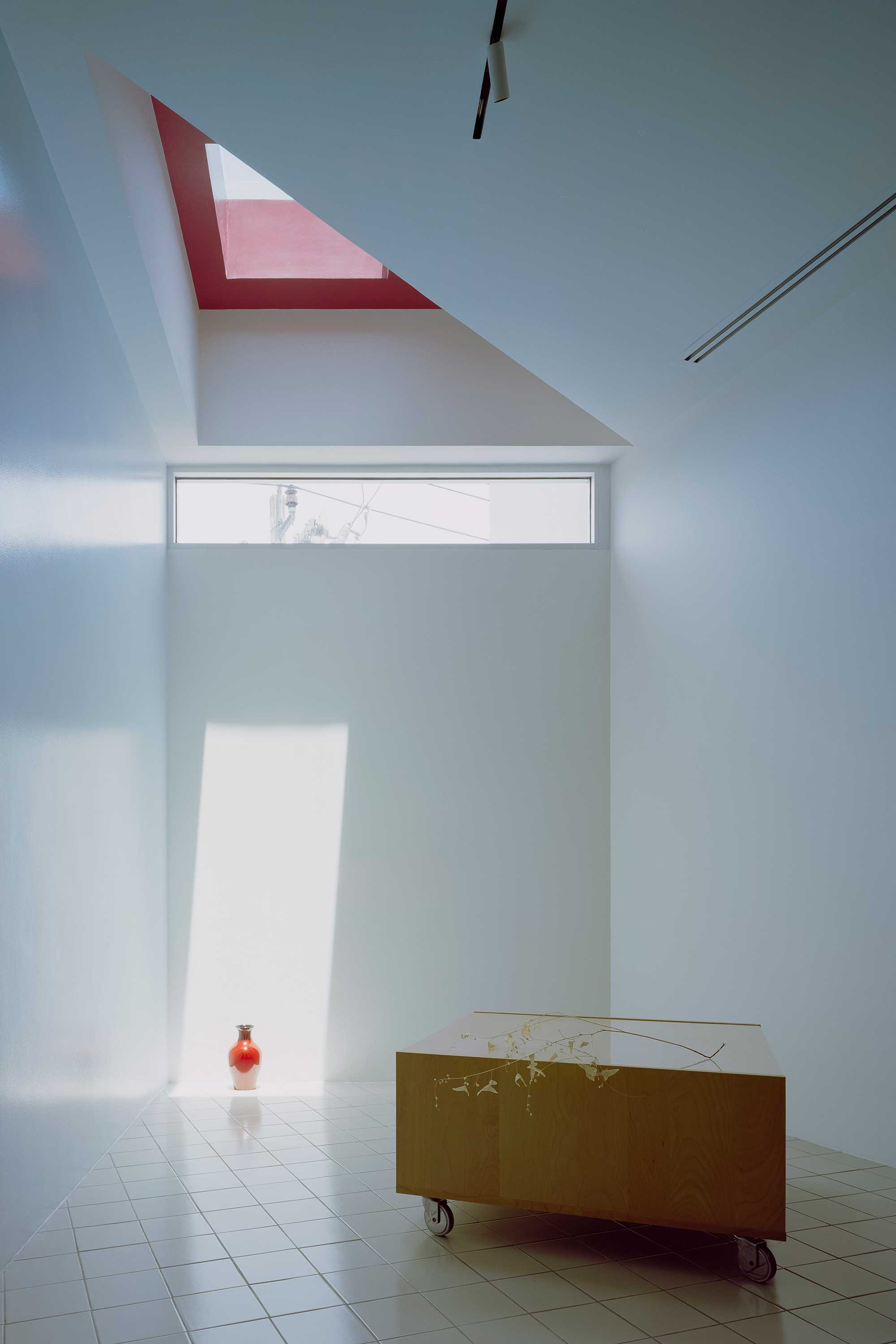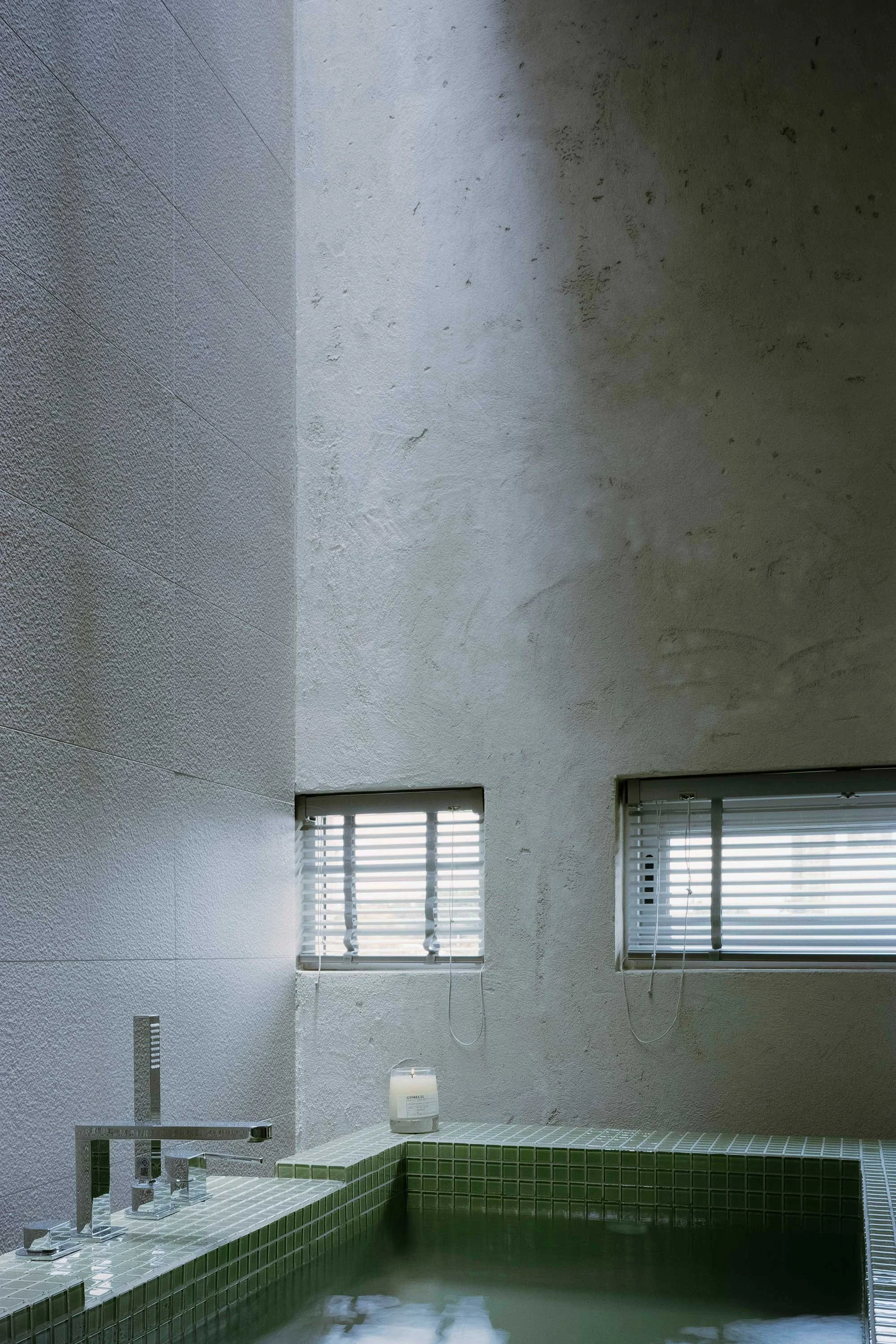 Other specific details cater to the client and his partner’s lifestyle, such as a Japanese-style tatami floor for sleeping and a custom stainless steel rail for hanging clothes. While the interior is open and light-filled, the exterior facade facing the studio remains solid and private, using a screen to blur the boundary between the bustling work environment and this quiet, light-filled retreat.