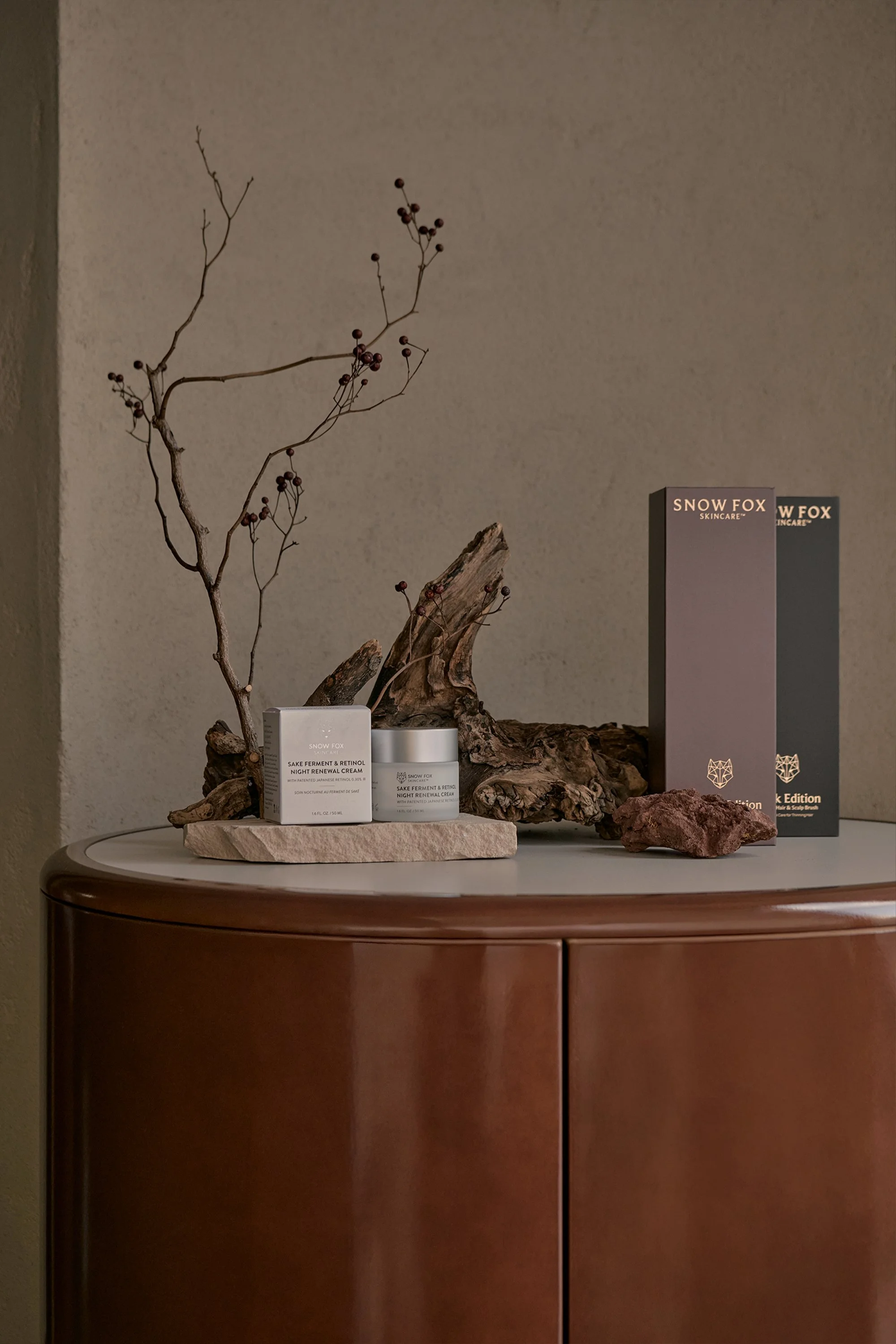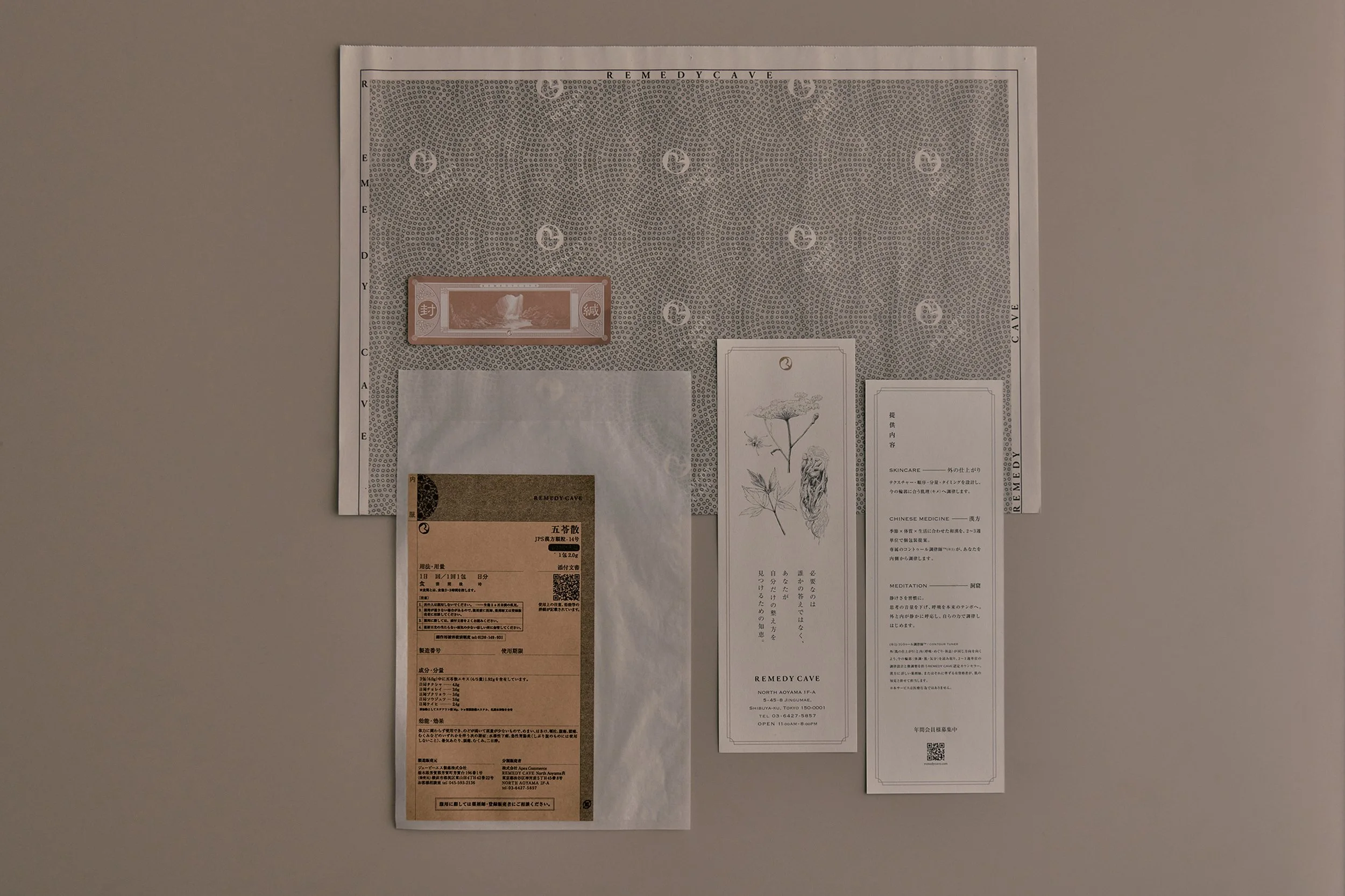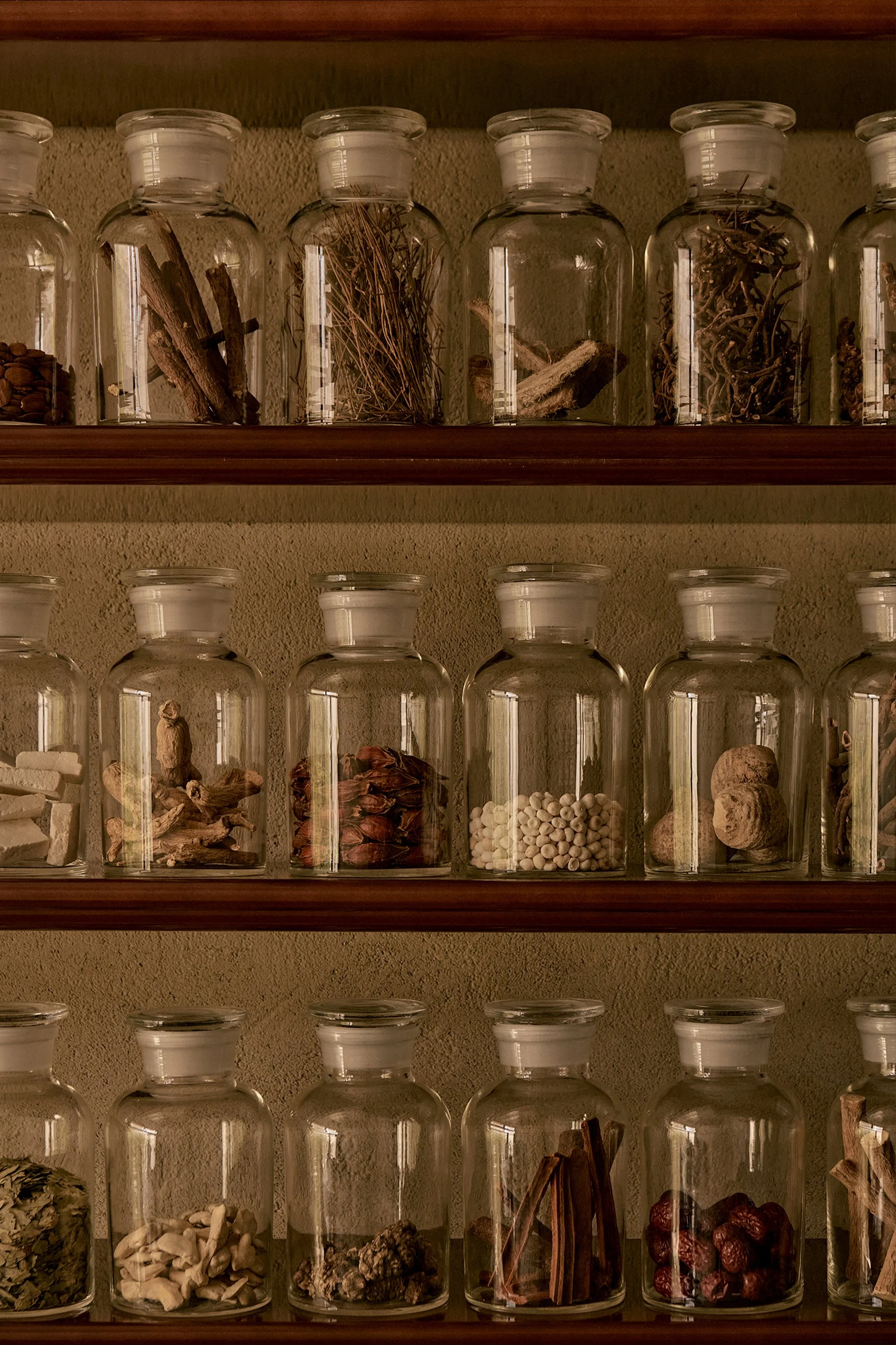 Throughout the space, Nagai shifted his focus to a holistic, experiential design rather than rely on grand architectural gestures. The studio designed the brand's product packaging and incorporated physical ingredients from traditional Chinese medicine into the visual landscape to harmonise with the brand’s signature worldview. And to complete the sanctuary’s atmosphere, they draped simple cloth over basic fixtures to create custom lighting, allowing a soft, gentle glow to diffuse into the space.