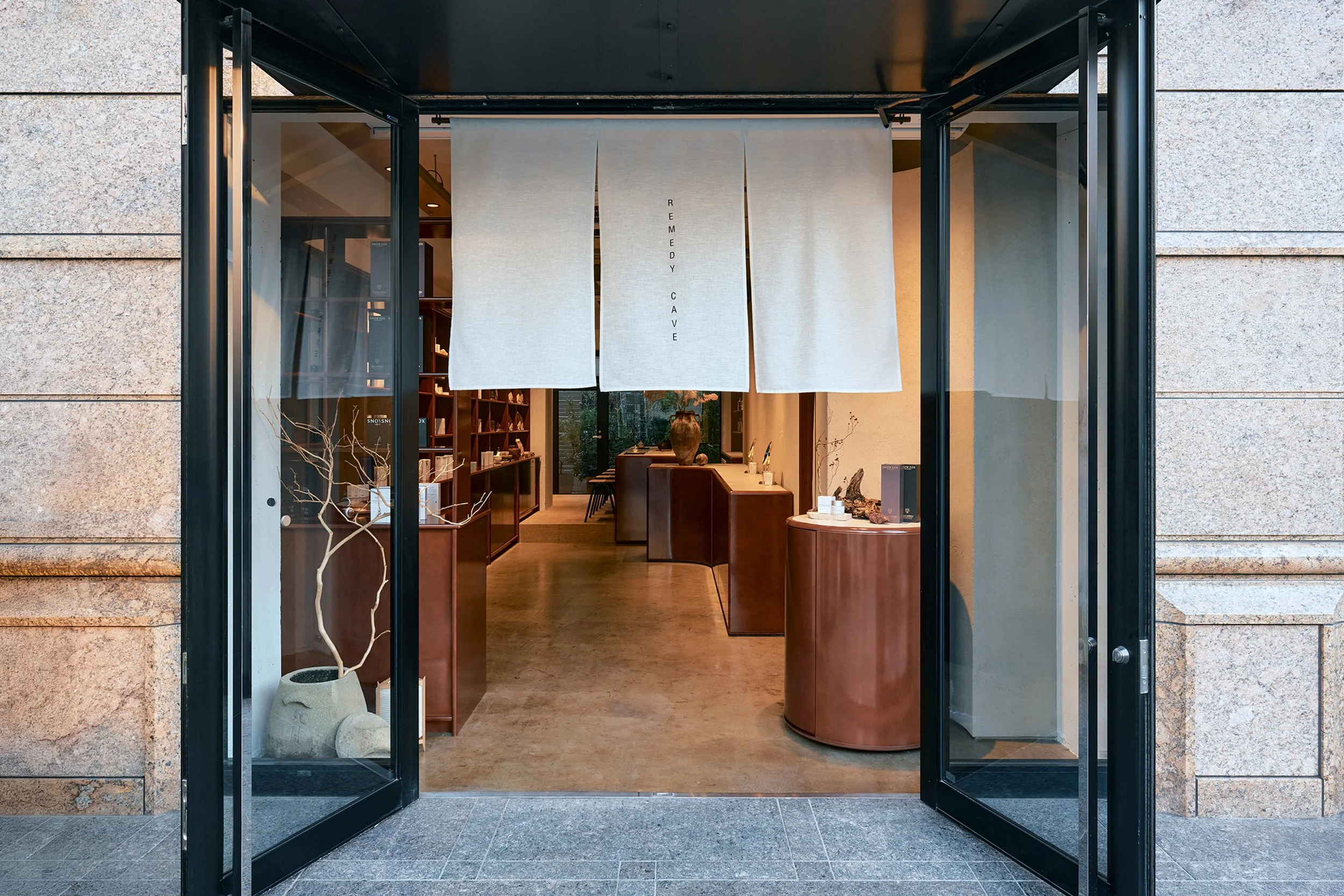 By blending raw MDF with Pakistani pink salt and hand-applied plaster, Negu Inc has created a tactile sanctuary in Omotesando that physically embodies Remedy Cave’s philosophy of healing from within