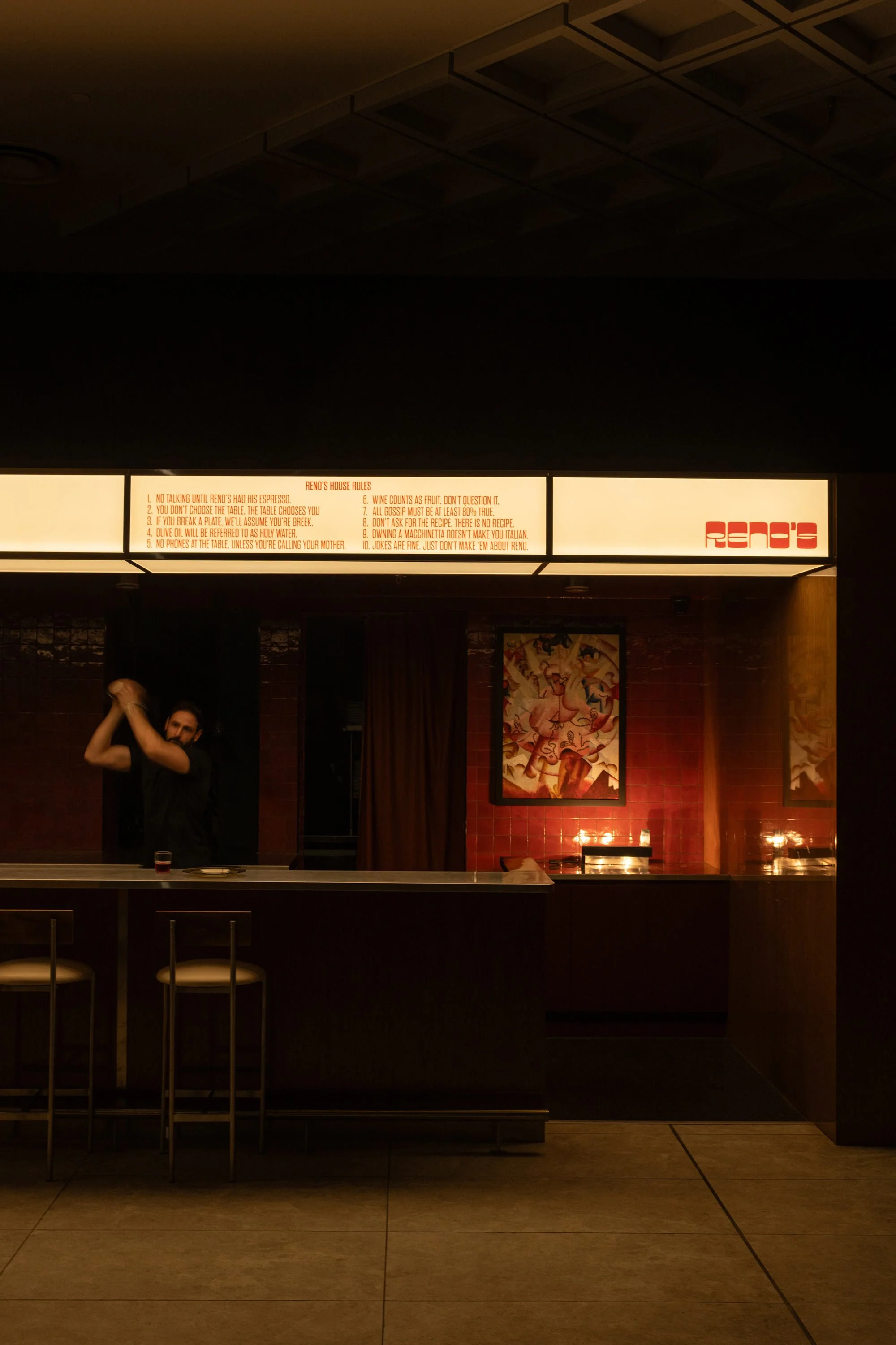 Drawing on the existing scale and brutalist-style architecture of the commercial tower that houses it, Reno’s Bistro bridges an unmet need, acting to bind commuters, those working within the building, and an after-work crowd. The 200-square-metre space adapts to those who use it while retaining its own presence and identity, which was inspired in part by seventies Milan, suburban Australian-Italian delicatessens and early migrant homes. Named after the owner’s father, Reno’s Bistro feels deeply familiar, and that’s no accident.