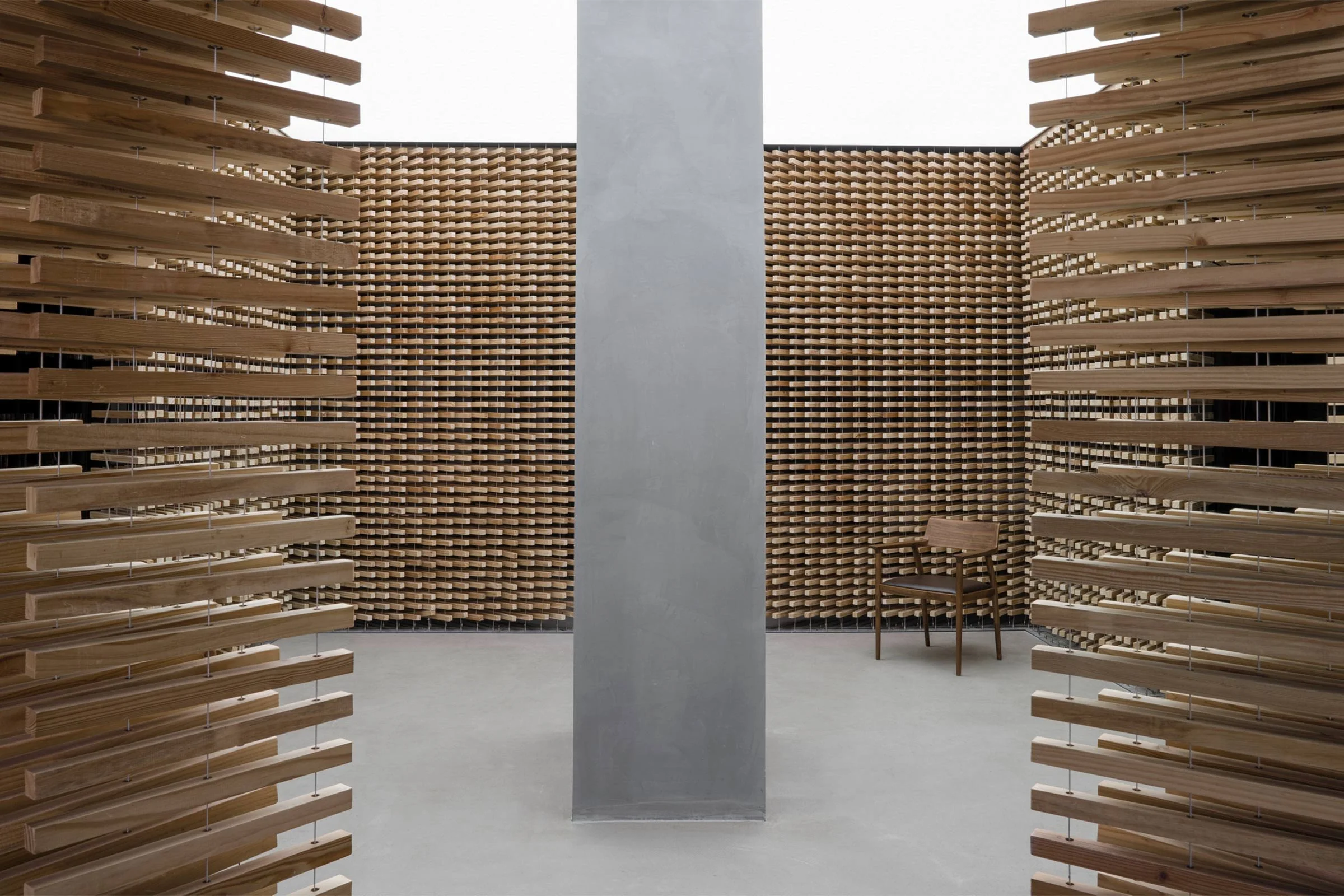 YC: We approached the project by devising an abstract concept where the whole space is understood as a home-like container and a kind of ‘nest’ made out of suspended pieces of timber.