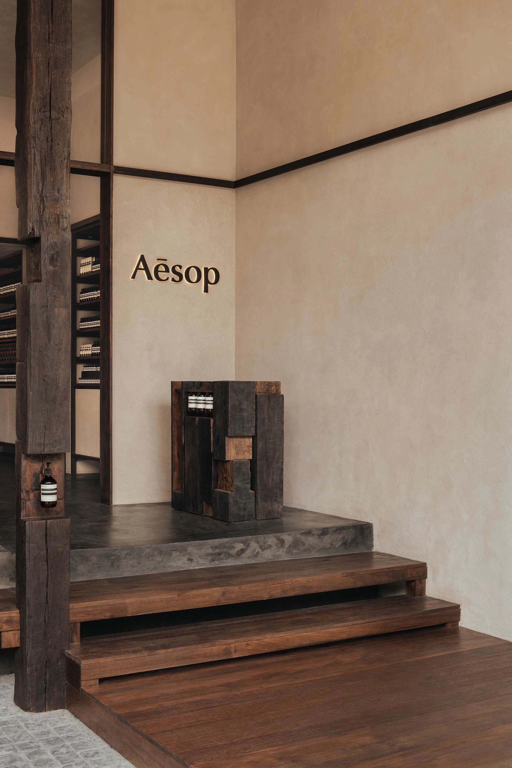 The founders were also already familiar with Aesop’s design focus. ‘We admire their long-standing position on design, and as designers, we follow their work. Not many brands have decided to invest in store design that adapts itself to the local neighbourhood in each area, and that uses non-conformist designers known for their materials and methods,’ he says.