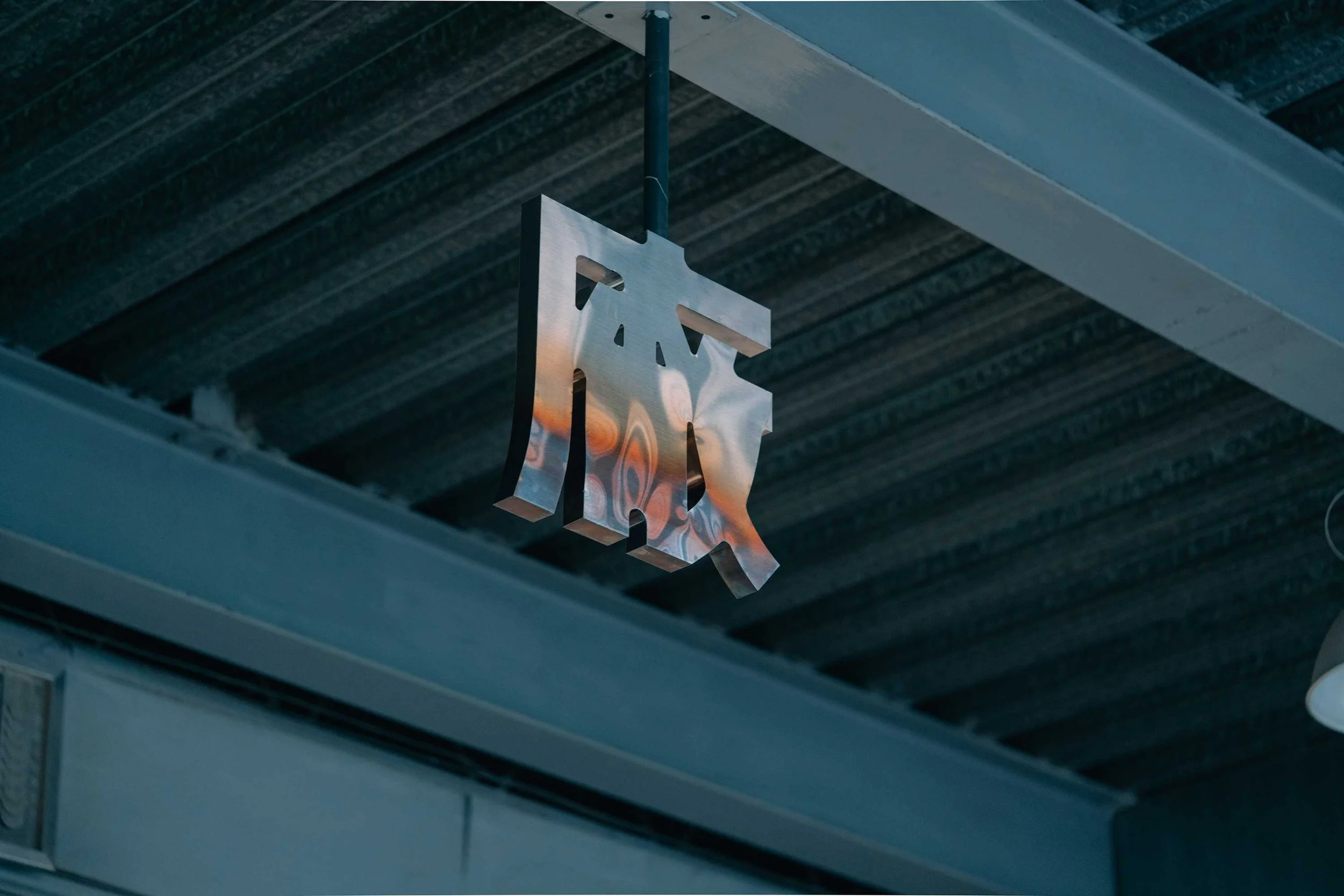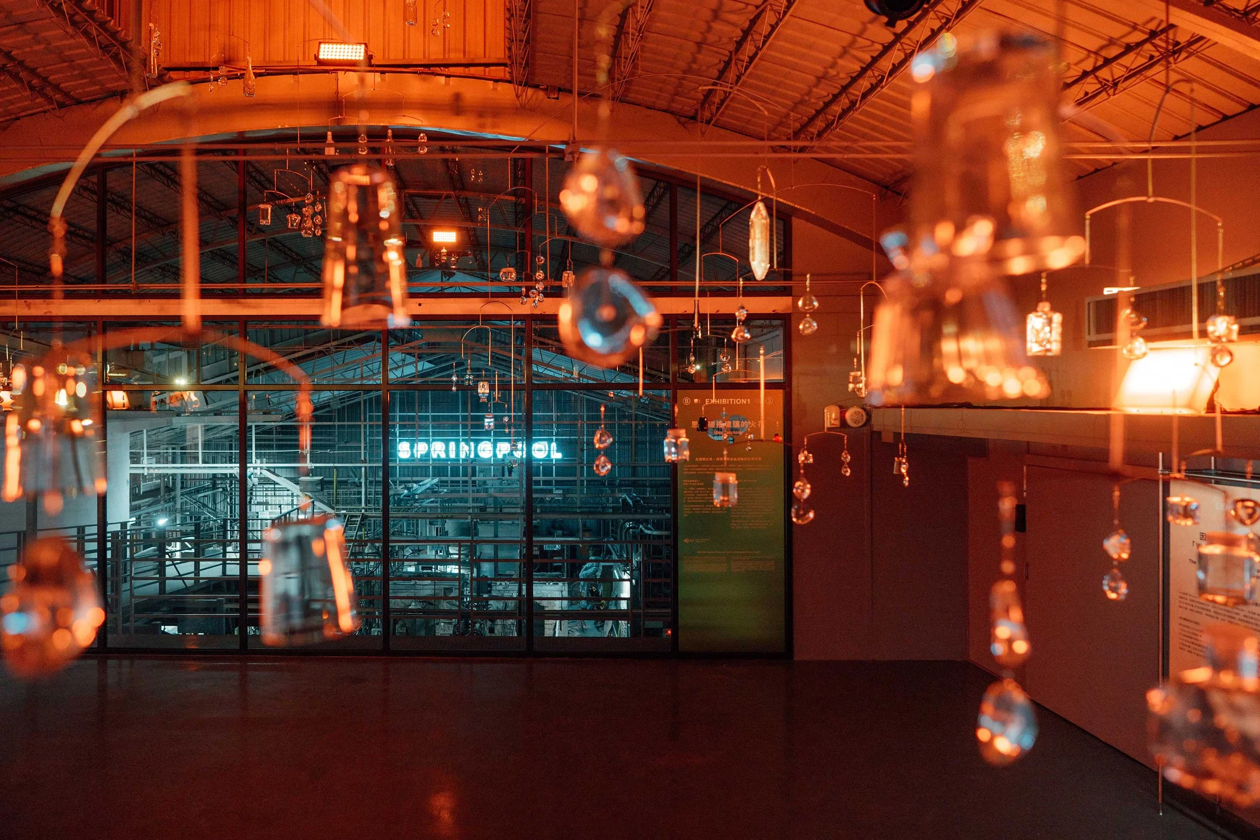 As the circulation ramps upwards, the spatial experience reaches its most charged moment. Lighting shifts into warm, amber tones, echoing the interior of a furnace. In the Idea Batching zone, suspended installations gather past collaborations with designers and brands, forming what reads as a physicalised ‘brain’, a site of accumulation, speculation and projection.