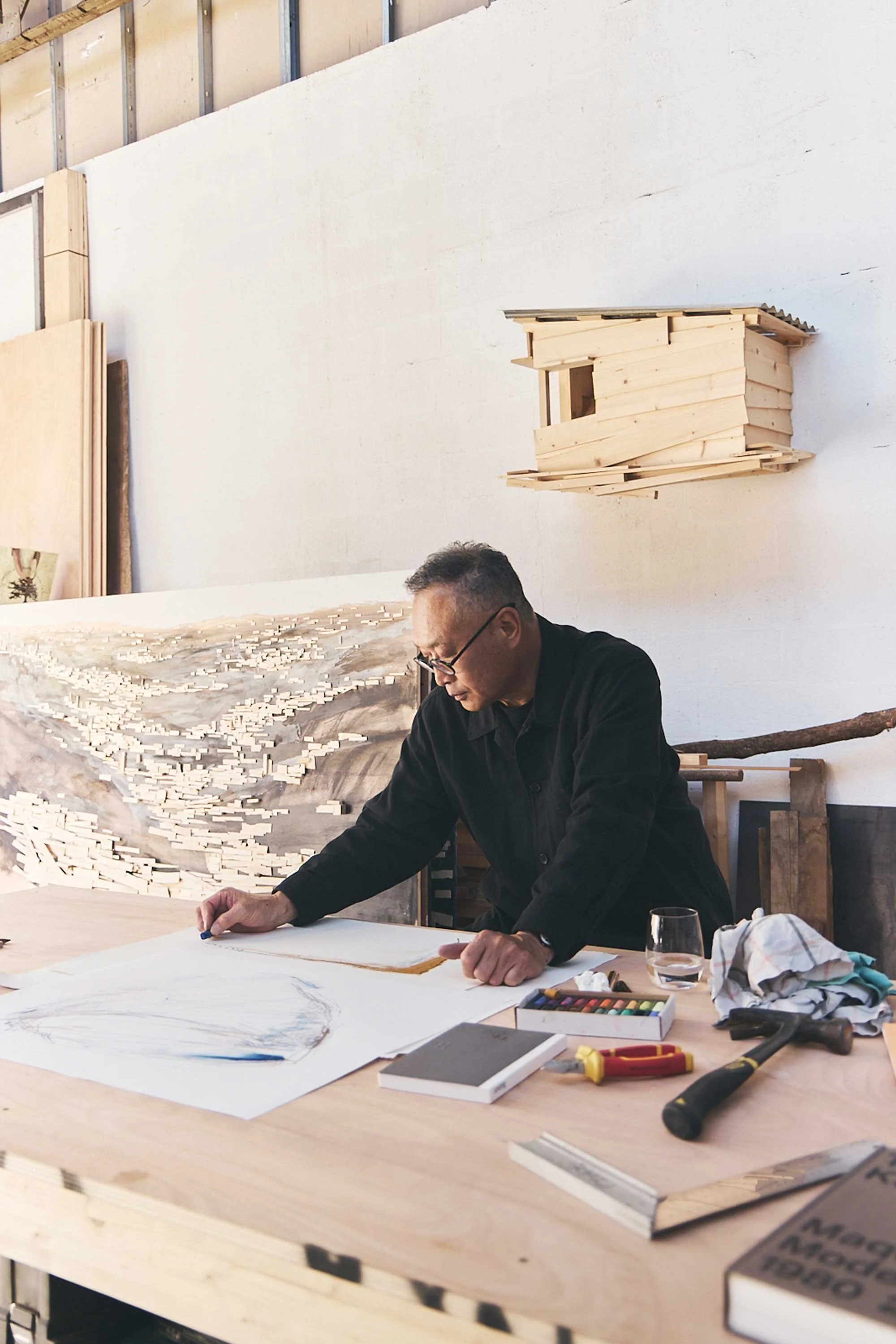 Born the son of a coal miner on the island of Hokkaido in post-Second World War Japan, the 72-year-old artist was a young darling of the Tokyo scene, studying painting and establishing his sculptural practice before a breakout participation at the Venice Biennale in 1982. Government grants and professorships saw him travel to New York and Paris to make art and teach, with the liberté of the Beaux-Arts de Paris nurturing his nomadic ways much more than the rigorous Japanese institutions of his youth. In New York, he made a pilgrimage to PS1 in the footsteps of Gordon Matta-Clark and encountered Jean-Michel Basquiat and Keith Haring, whose influence coupled with the wider graffiti movement saw Kawamata experiment with ephemeral works on the streets of NYC. ‘There, I made a kind of fake homeless shelter on the street,’ he reminisces. ‘This was a starting point for me with cardboard and wrapping something. It was quite fragile — the kind of thing that in just ten minutes would’ve blown away.’