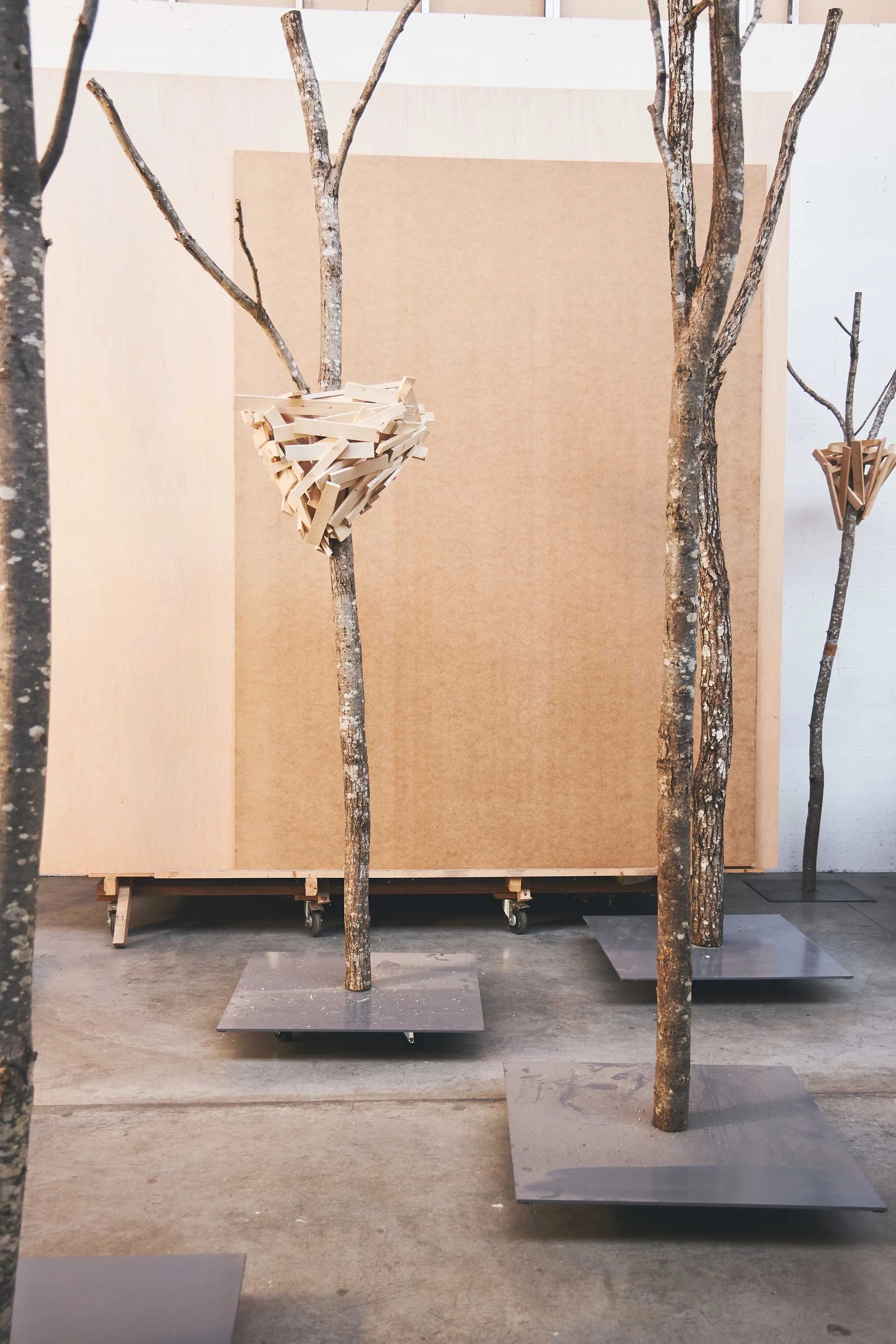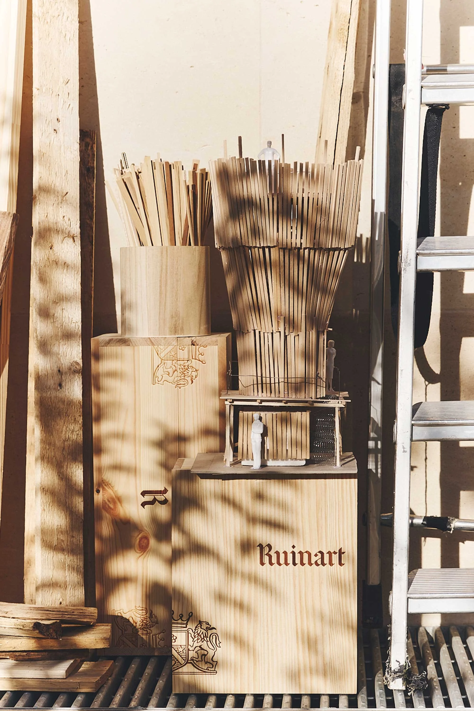 Drawing from Kawamata’s own archetypes, the structures Nest, Observatory and Tree Hut for Ruinart don’t attempt to comment on their oenological surroundings. Instead, they are paradoxical additions to the landscape — neither architecture nor nature — crafted with the materials of the former and the spontaneity of the latter, destined to grey with age in the sun and the rain. A philosophical observer might attempt a metaphor for vintage champagne, yet Kawamata would likely have nothing of it. His pragmatism and humility belie the otherworldly allure of his creations, and their commentary on impermanence at a time when public art remains so tied up in monumental gestures. ‘It’s kind of endless,’ he muses. ‘My work is never finished, so if I need to continue, I can continue. If I want to stop, I stop — even if the installation is still kind of imperfect anyway. So, I think this is freer. The work is about freedom or possibility to change in any way, which is always quite interesting.’