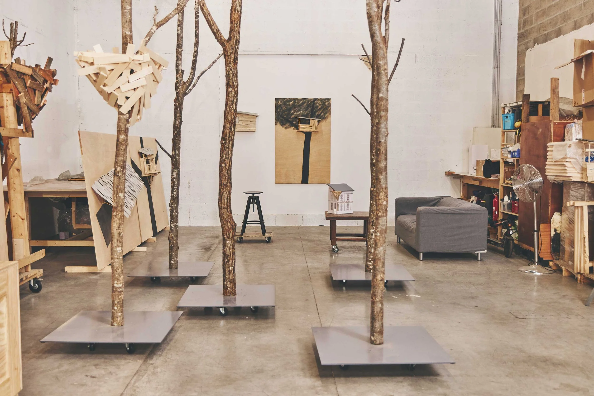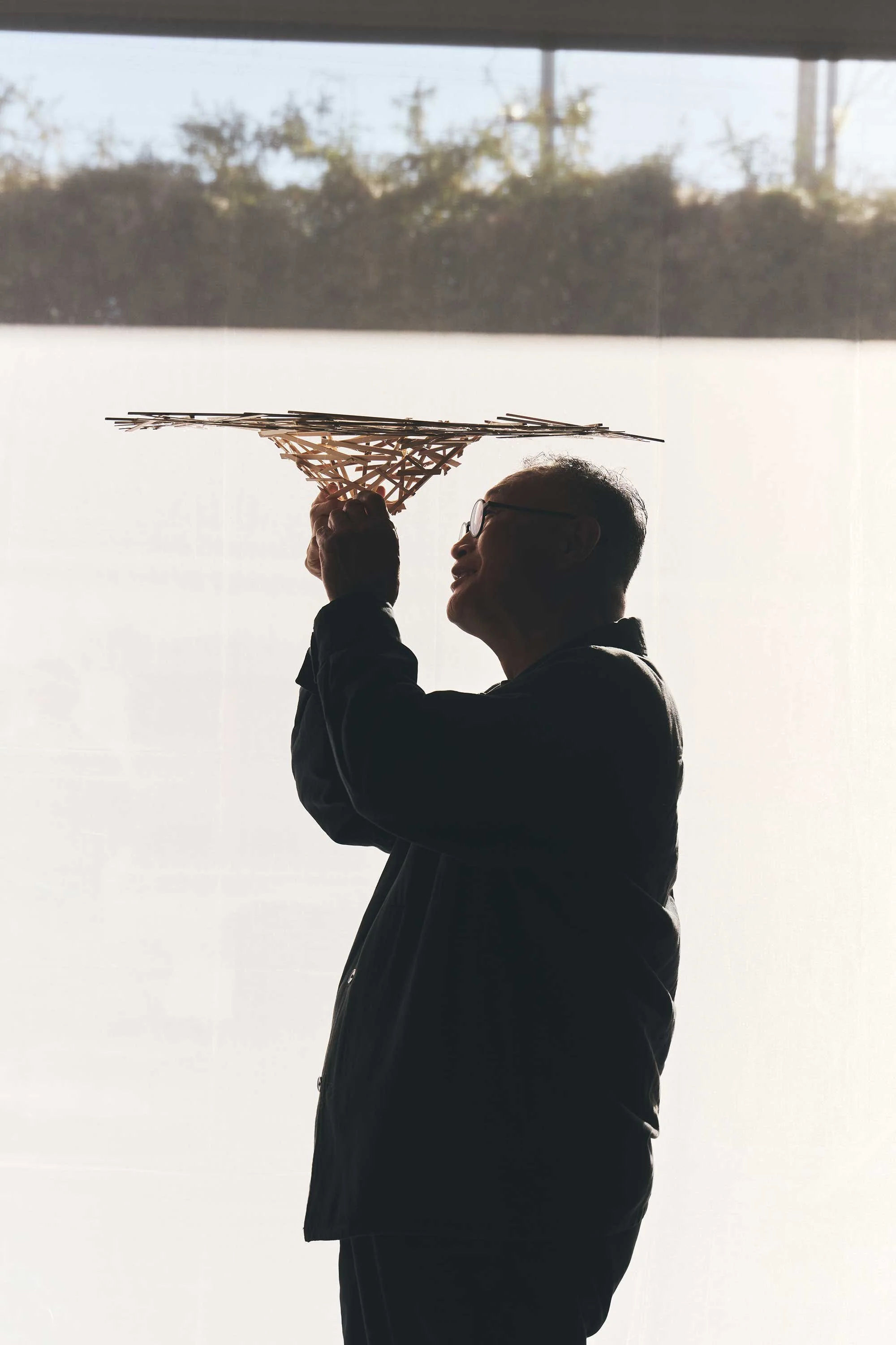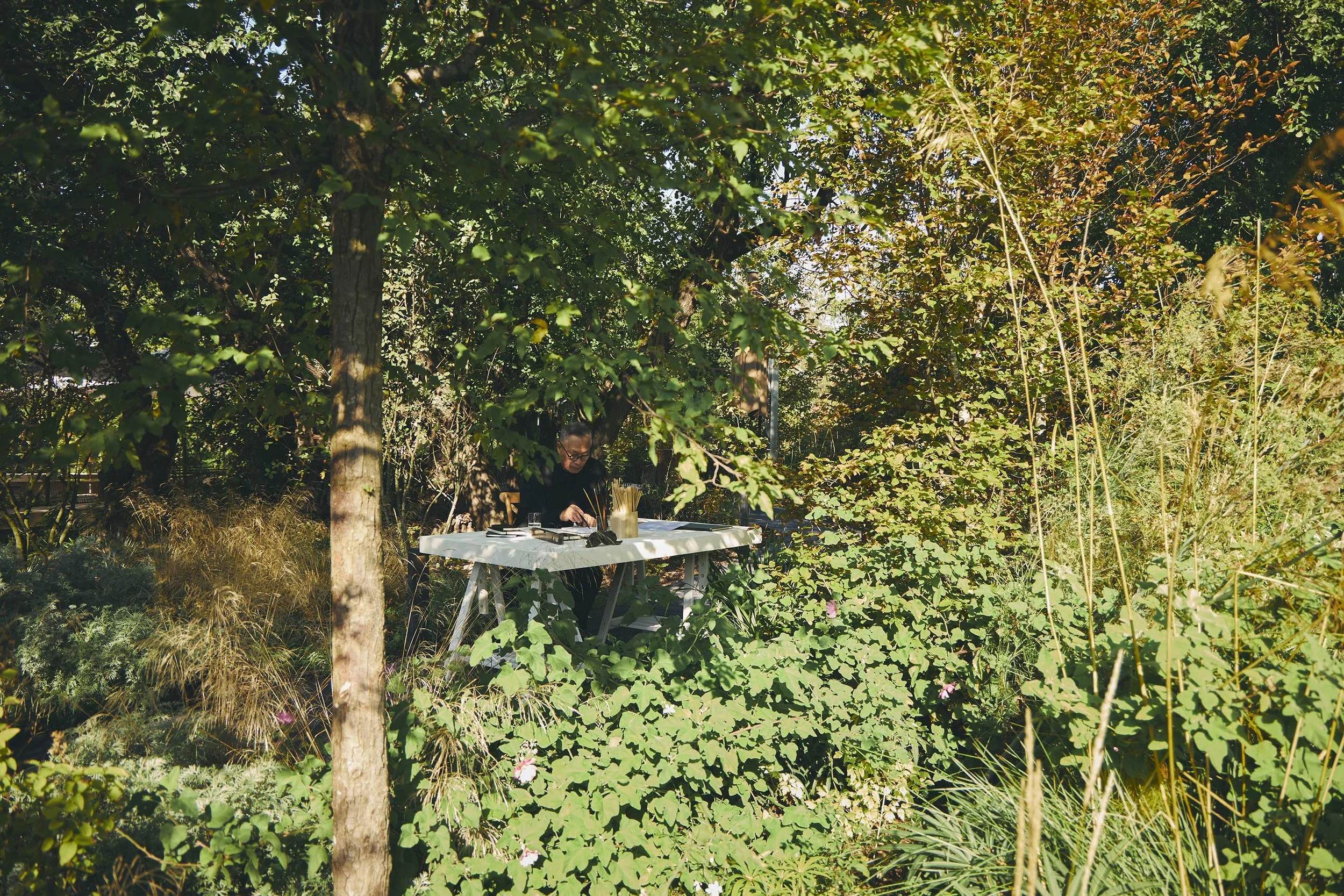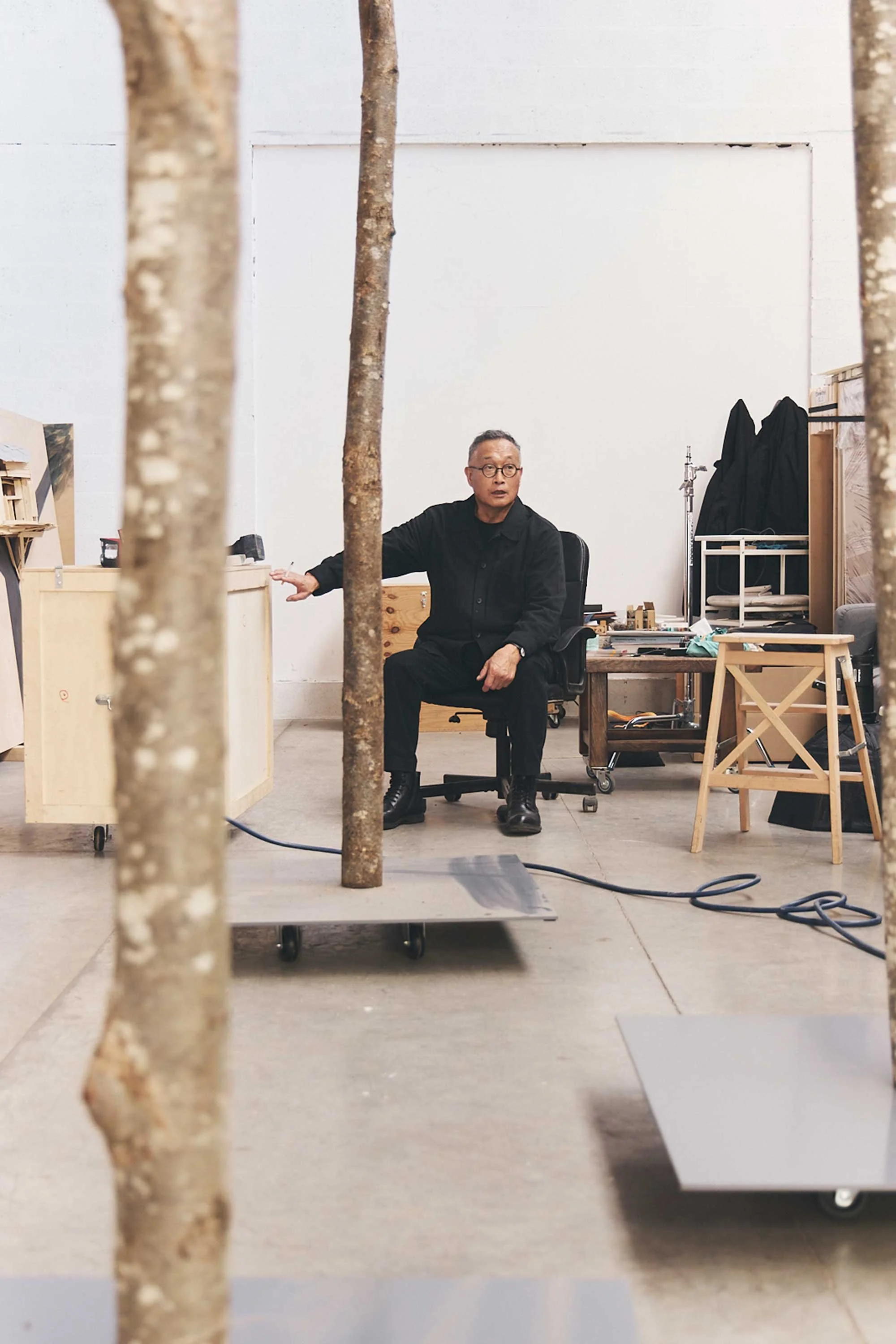 Signed by blue-chip gallerist Kamel Mennour in 2008, Kawamata’s long love affair with France and the French continues this year with a serial partnership with Ruinart, bringing the artist back to Reims, the commercial centre of Champagne. Consisting of a travelling rollout of temporary shows at the Palais de Tokyo in Paris and at art fairs around the world, the collaboration culminates in a trio of permanent sculptures in the grounds of Maison Ruinart. ‘It’s a statement on fragility. I try to create moments that disturb the landscape or cityscape,’ Kawamata says, surrounded by his new ‘bonsai’ works in a show on Paris’s Left Bank. ‘When I create a piece on a tree or in the forest, that connects with nature. But my work began from the idea of taking natural materials and organic shapes in conversation with contemporary architecture. People have likened them to parasites.’ Or avalanches, as many described his viral 2024 intervention at Dover Street Market Paris — when hundreds of classical French dining chairs seemed to pour from a first-floor window of the Comme des Garçons-run concept store. ‘Kawakubo-san refused my first idea,’ he reveals. ‘I think she’s never just said, “OK!” She said that my work was more about sculptures that stick to the building — not an independent structure. So, I said, “Yes, OK,” and I changed it.’