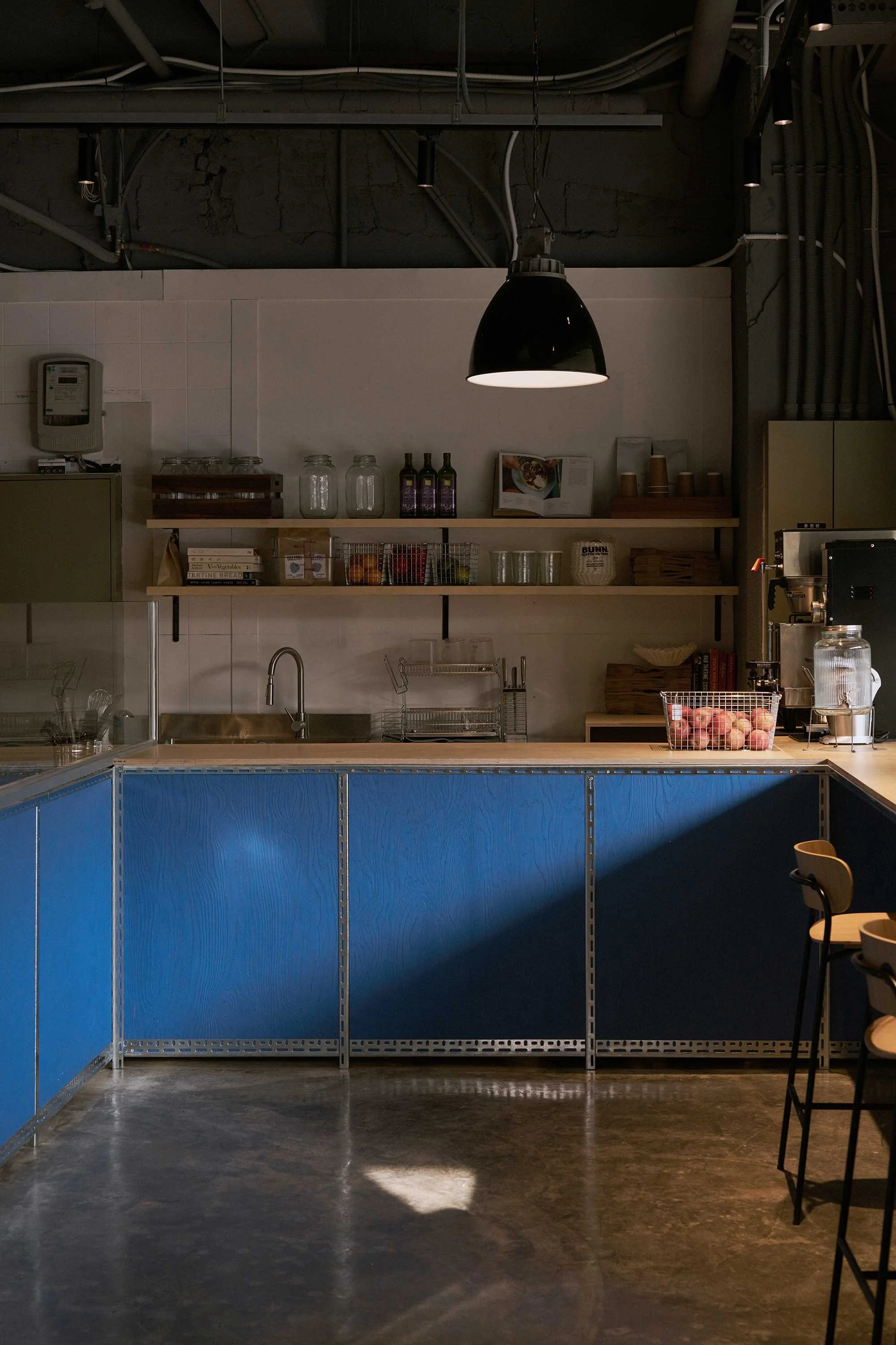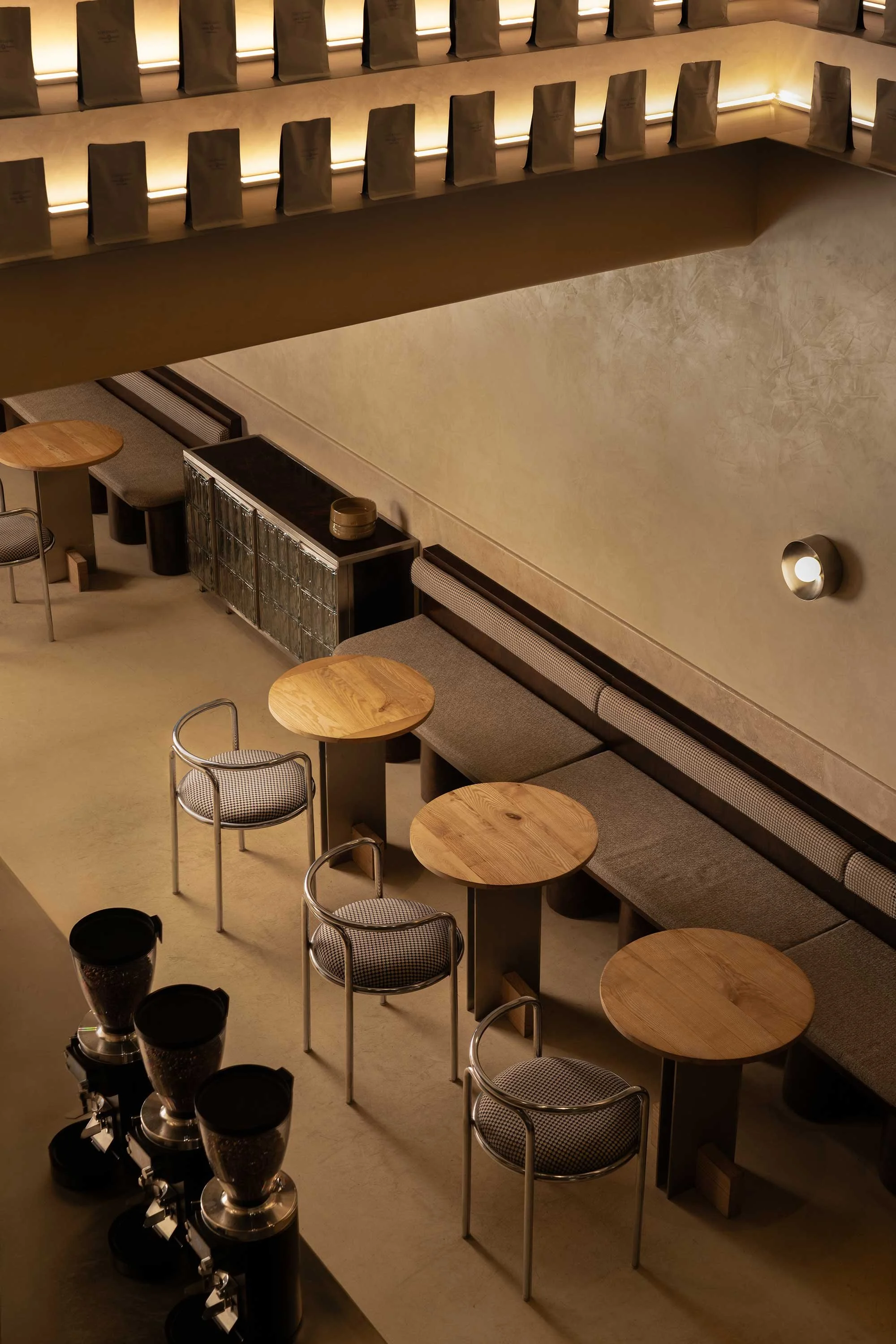 This small Seoul bakery, designed by Seuk Hoon Kim and his team at Studio Eccentric, draws inspiration from the owner’s and designer’s shared memories of New York neighbourhood bakeries. The design avoids overly polished decor, focusing instead on raw surfaces and clean lines to create a quiet corner shop atmosphere. Minimal ornamentation and warm lighting ensure the bread and sandwiches remain the true focal point.
