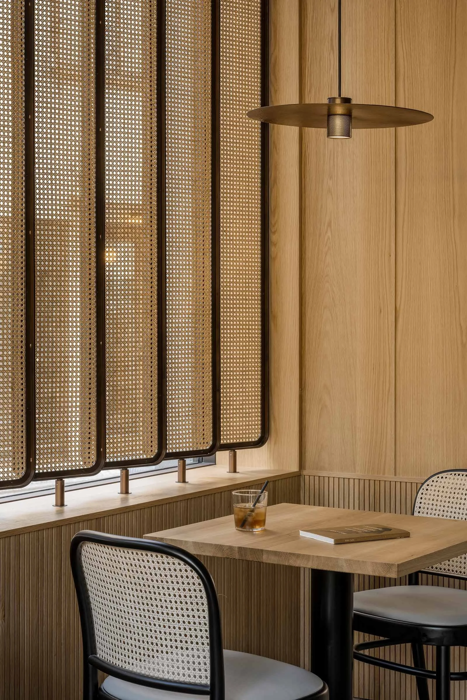 The many copper elements repeated throughout, derived from a wood-fired pizza oven — the most visually dominant feature in the ground-floor restaurant space — are one of Ashizawa’s favourite themes throughout the property, resulting in the material’s use for the ground-floor entrance facade and bespoke lighting in both the restaurant and rooftop oyster bar. In fact, much of the furniture and lighting is bespoke, designed by the two oft-collaborating firms, and has been produced by makers and artisans from all over Japan.