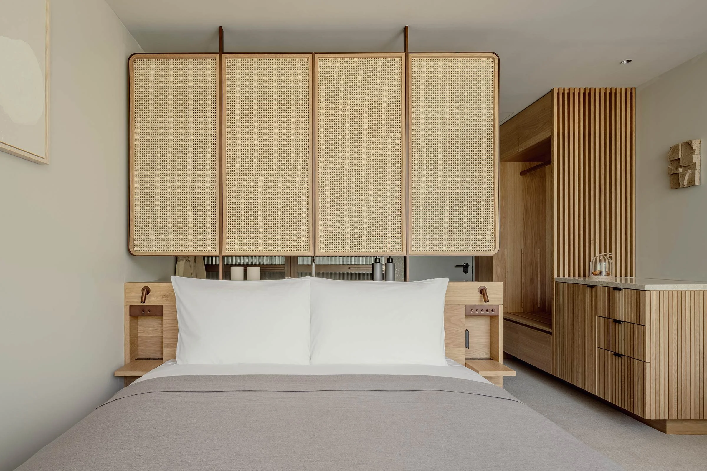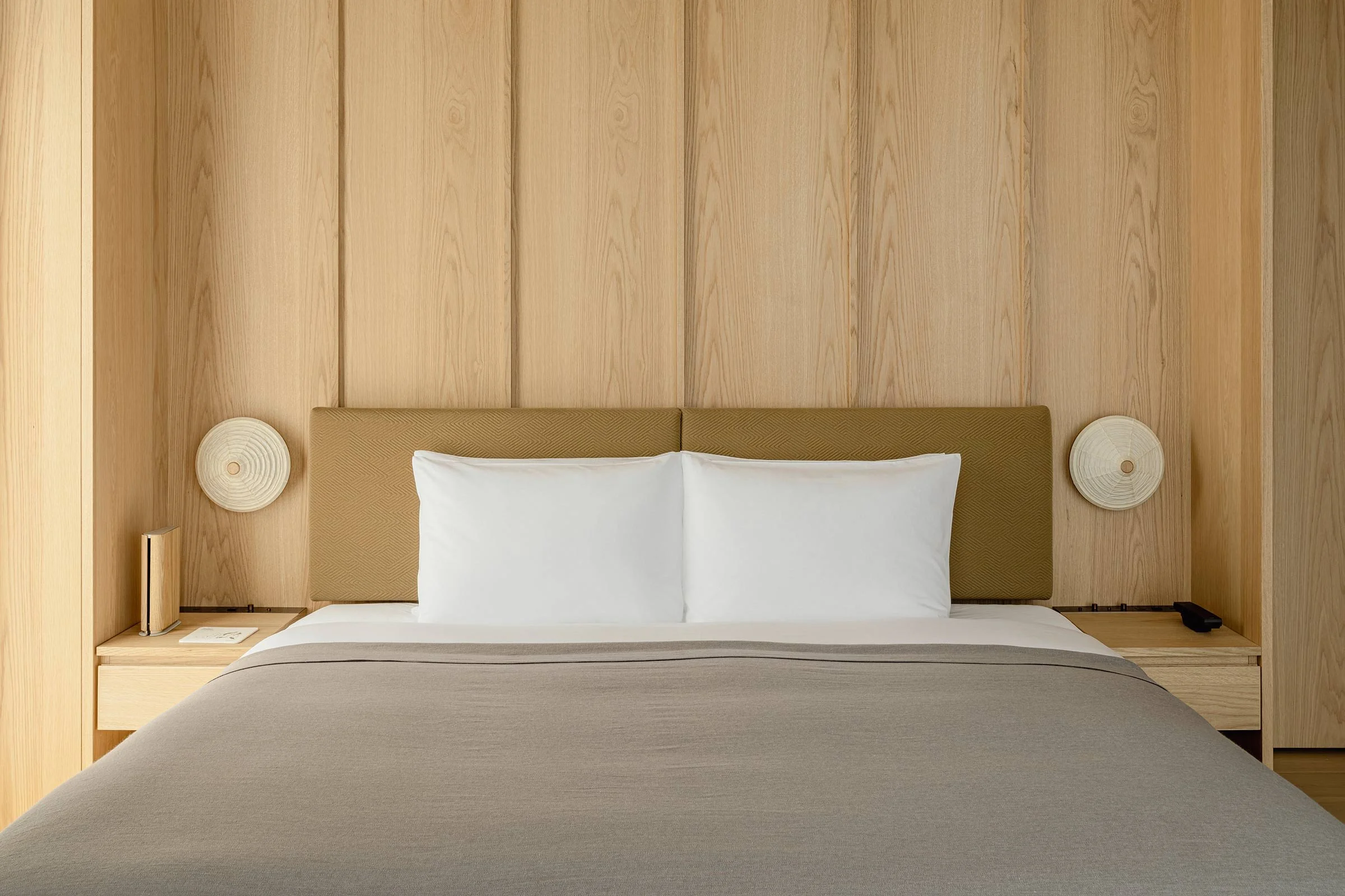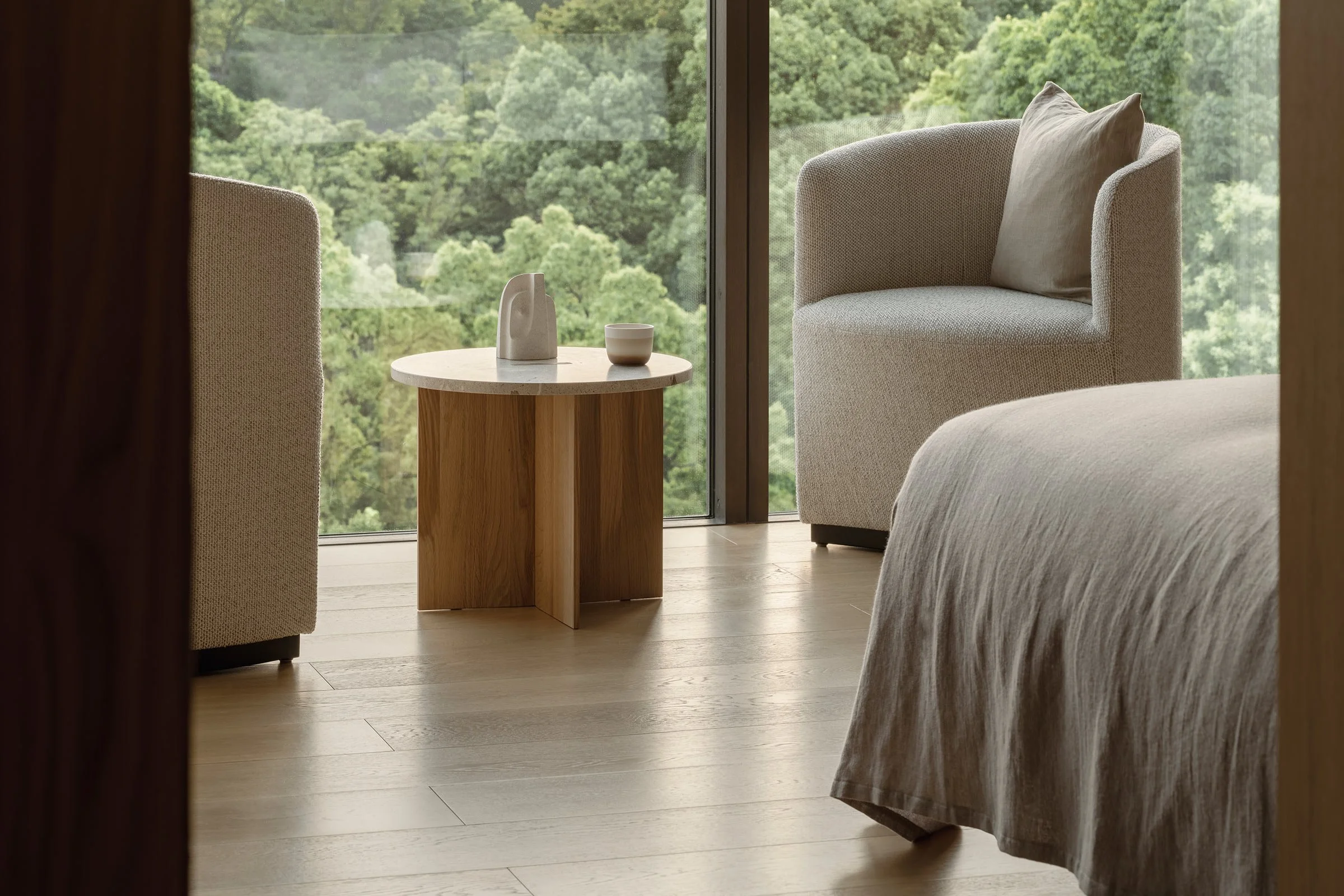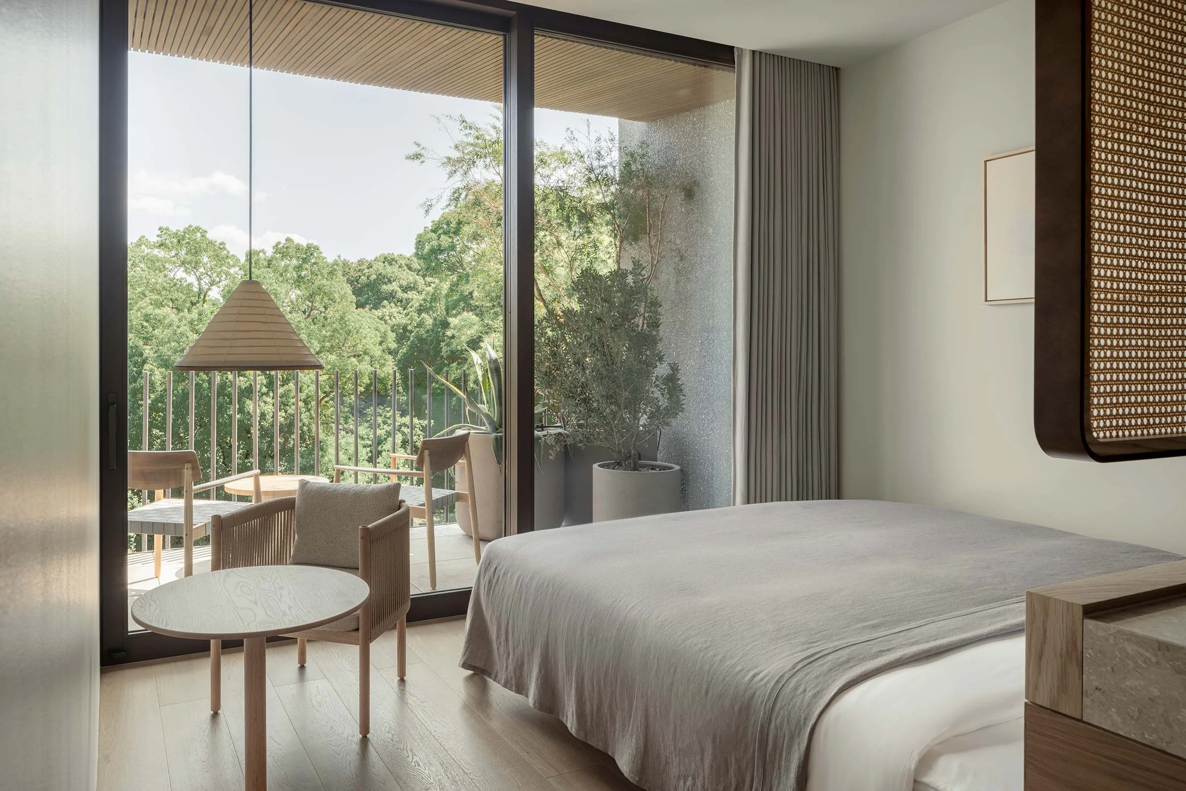 ‘Tokyo has a kind of contrast between a certain liveliness and quietness,’ says Keiji Ashizawa. Finding liveliness in a city this size is not difficult — in fact, the new property is an easy stroll from the world’s busiest intersection, ‘scramble crossing’, made famous by Lost in Translation. You’d be forgiven for assuming the quietness could be more of a challenge to find, and yet there’s a definite sense of tranquillity to be found within Yoyogi Park’s 54 hectares (it’s also home to Pritzker winner Kenzō Tange’s Olympic Stadium, which is visible from some rooms). Ashizawa and Norm have skilfully fused these contrasting aspects of the environs into the boutique 20-room, five-suite property.